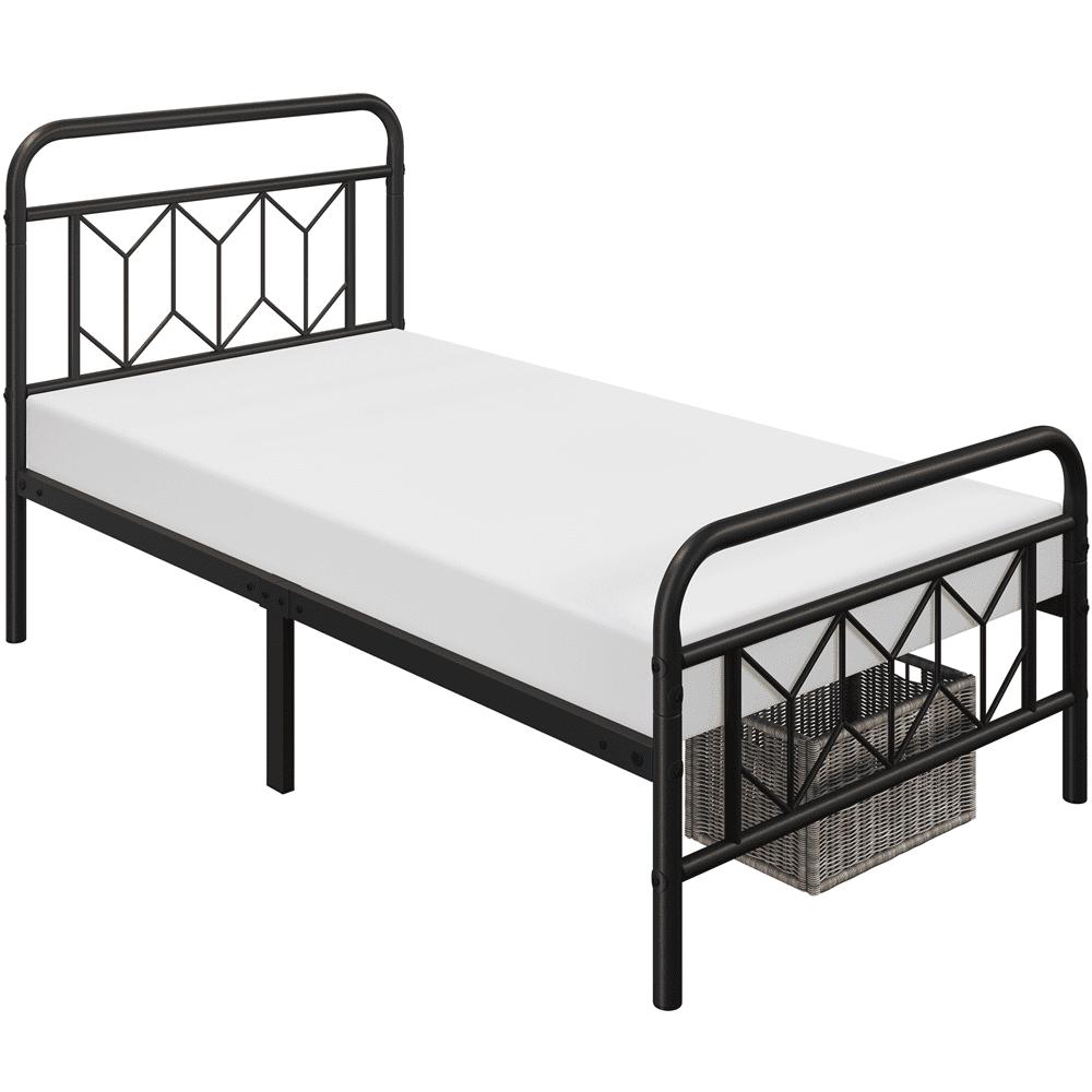 Easyfashion Aubrey Vintage Metal Chevron Platform Bed, Twin, Black