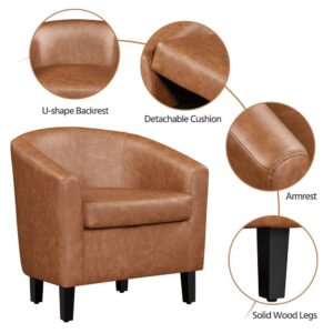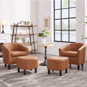 Easyfashion Barrel Accent Chair with Ottoman, Brown Faux Leather