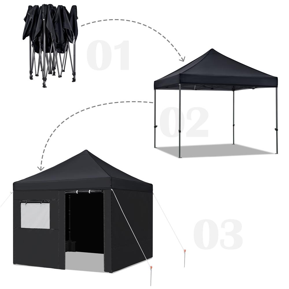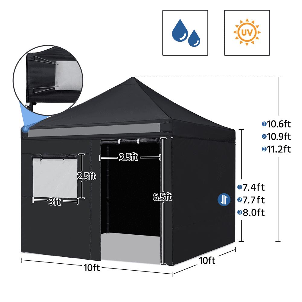This waterproof and sunproof canopy adopts selected materials for long-term service life. The height is adjustable; the sidewalls are removable as you wish. For professional use, we offer matching stakes, ropes, sandbags and a wheeled bag for the easy pack. Do not worry about the installation. The illustrated instructions will guide you through the installation. We are dedicated to providing warm service and quality products for every customer. If you have any problems and questions, please do not hesitate to contact our customer service for further assistance.