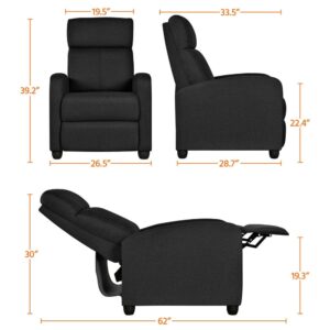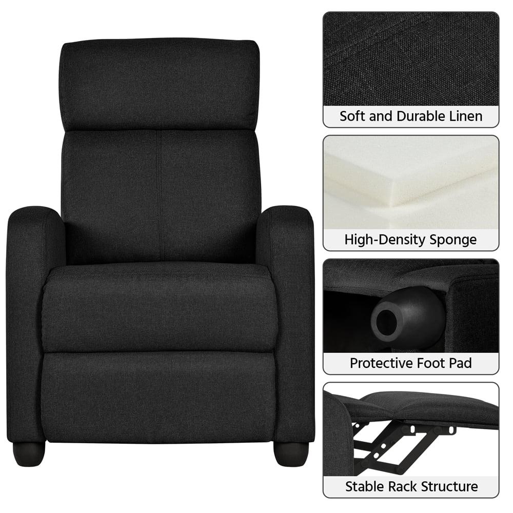 Easyfashion Fabric Push Back Theater Recliner Chair with Footrest, Black