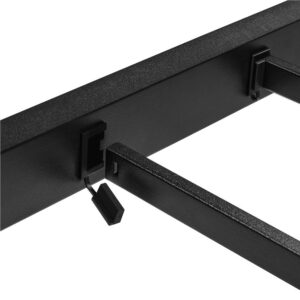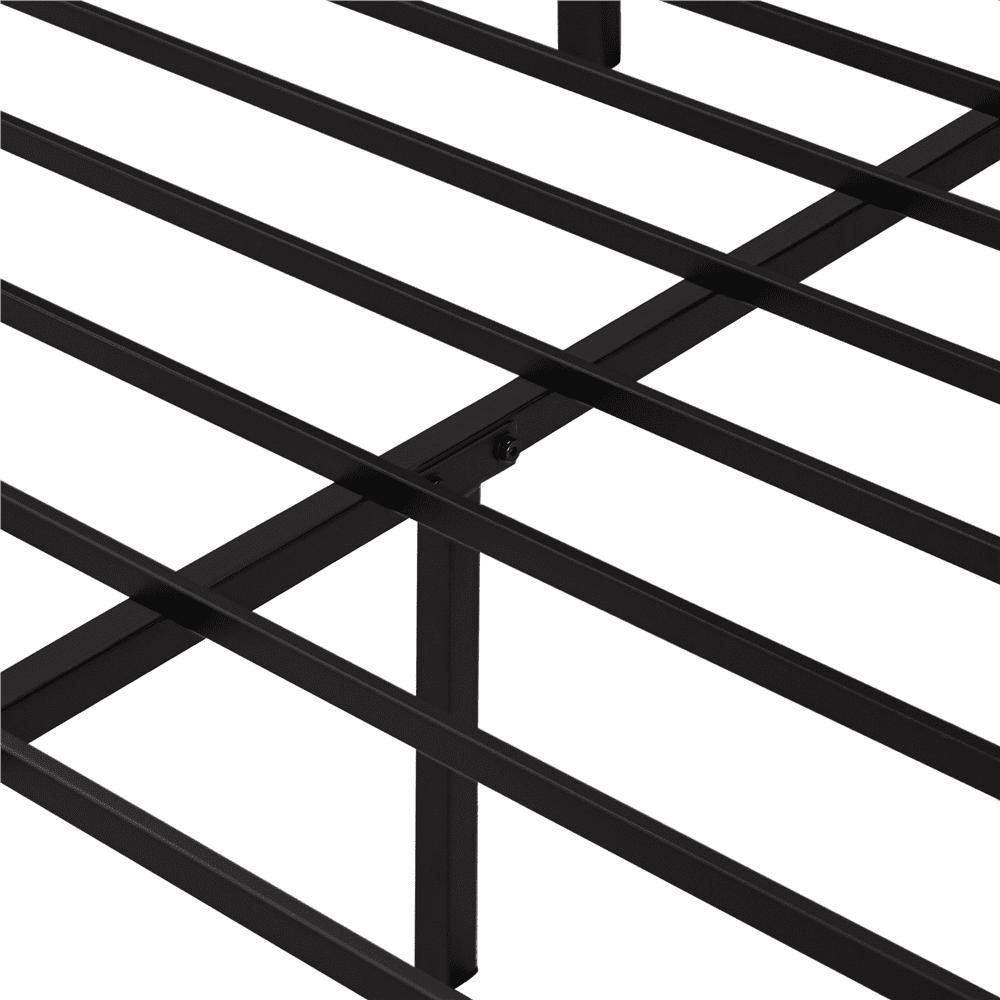 The wooded headboard takes a weathered appearance contrasting to the black slatted frame, creating a sleek but warm tone to your space. Add some soft textiles to the bed that will perfectly balance the coolness of metal. The frame is crafted with premium iron and high-quality MDF boards for solid support and long term durability. The metal frame has been well painted for scratch-resistance and water-resistance and the CARB P2-compliant MDF board is healthy for home use and commercial use.