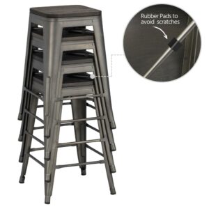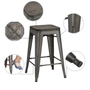 Easyfashion Metal Counter Stools Bar Kitchen stools with Wooden Seat, Set of 4, Gunmetal