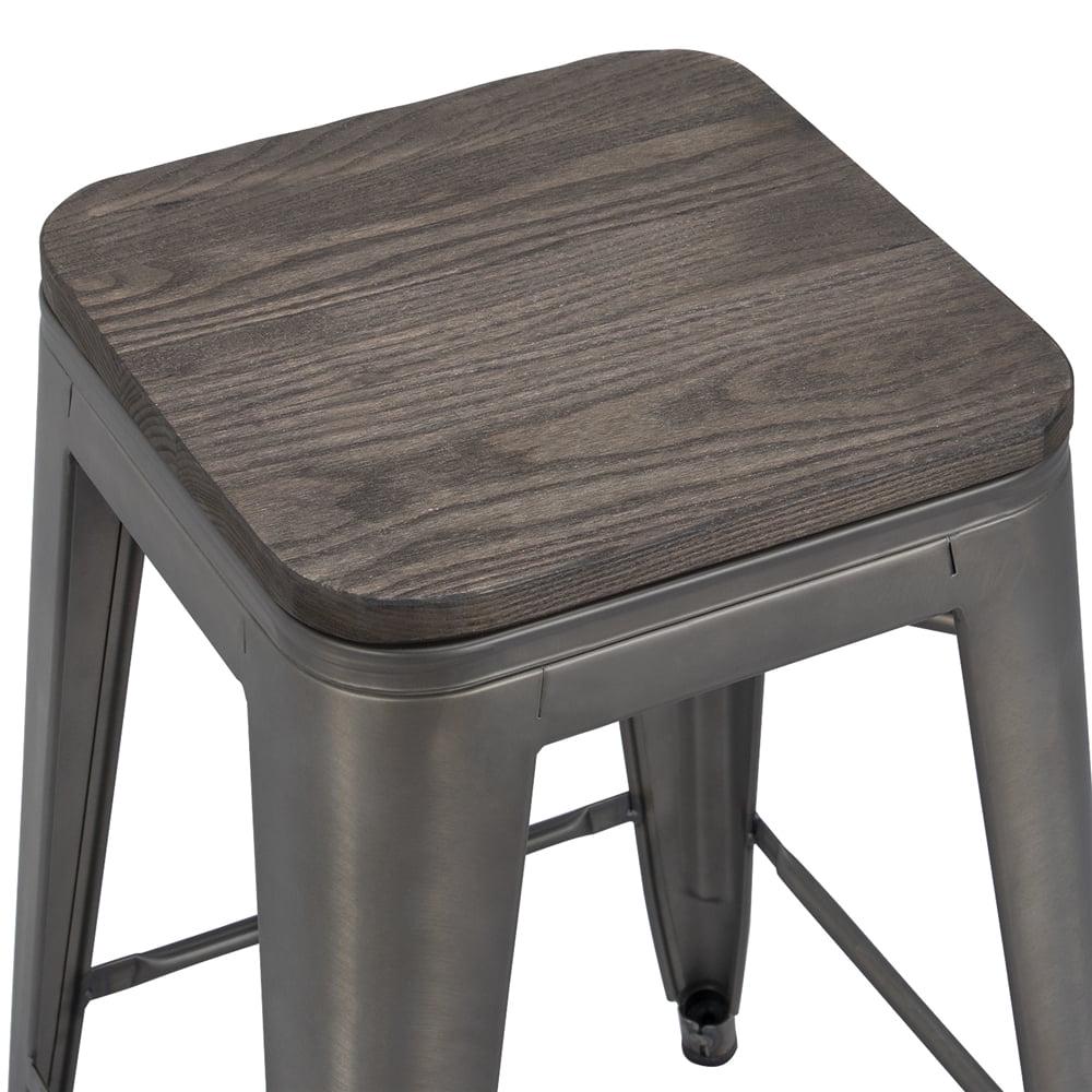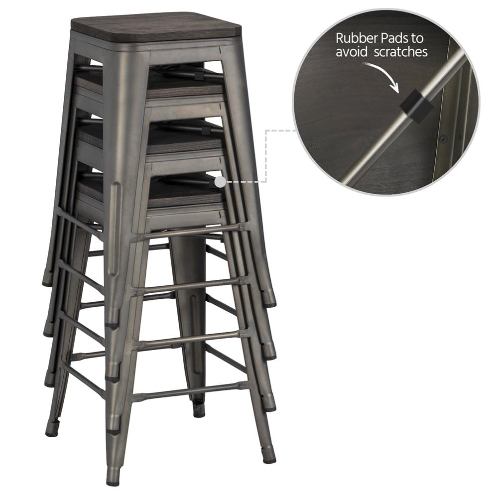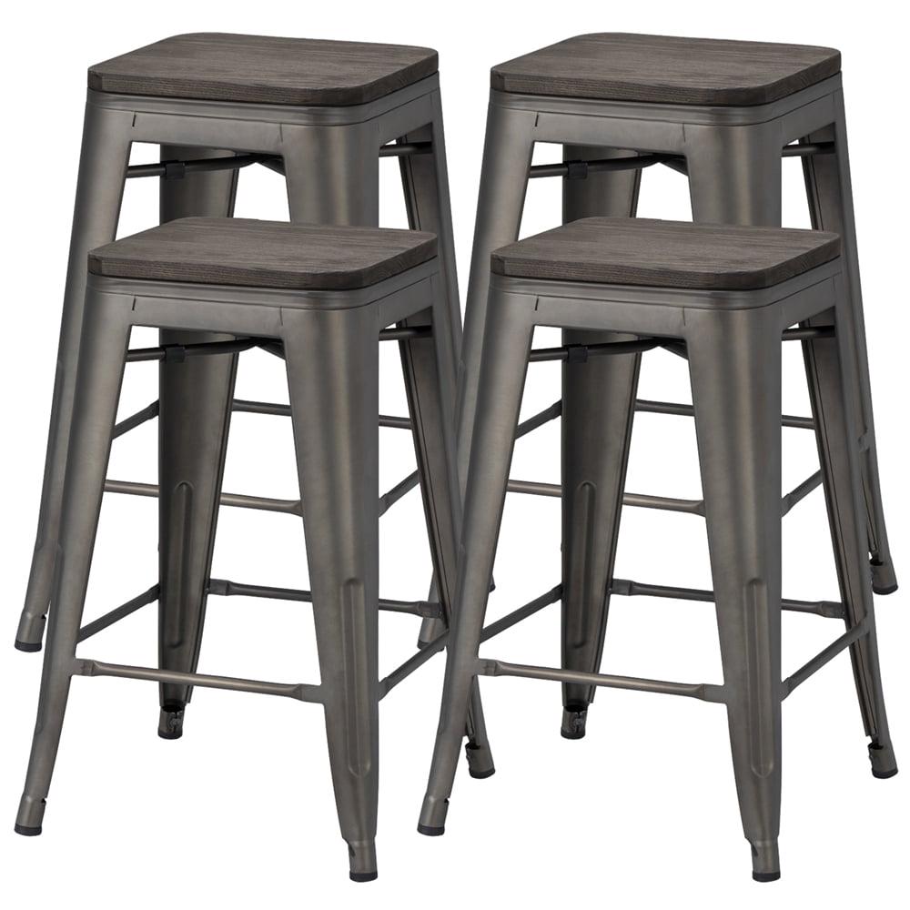 *Easyfashion Metal Counter Stools Bar Kitchen stools with Wooden Seat, Set of 4, Gunmetal :