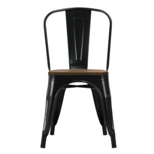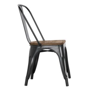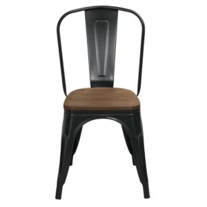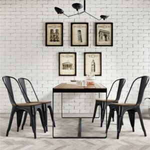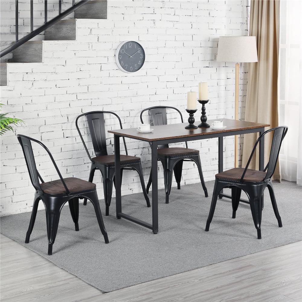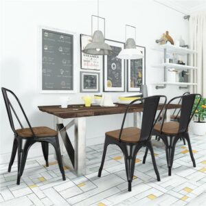 Easyfashion Metal Dining Chair with Wood Seat for Indoor Outdoor, Set of 4, Black