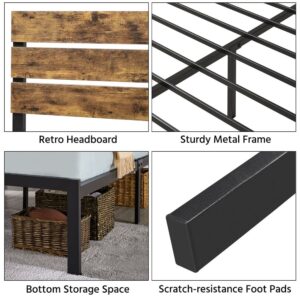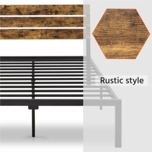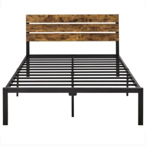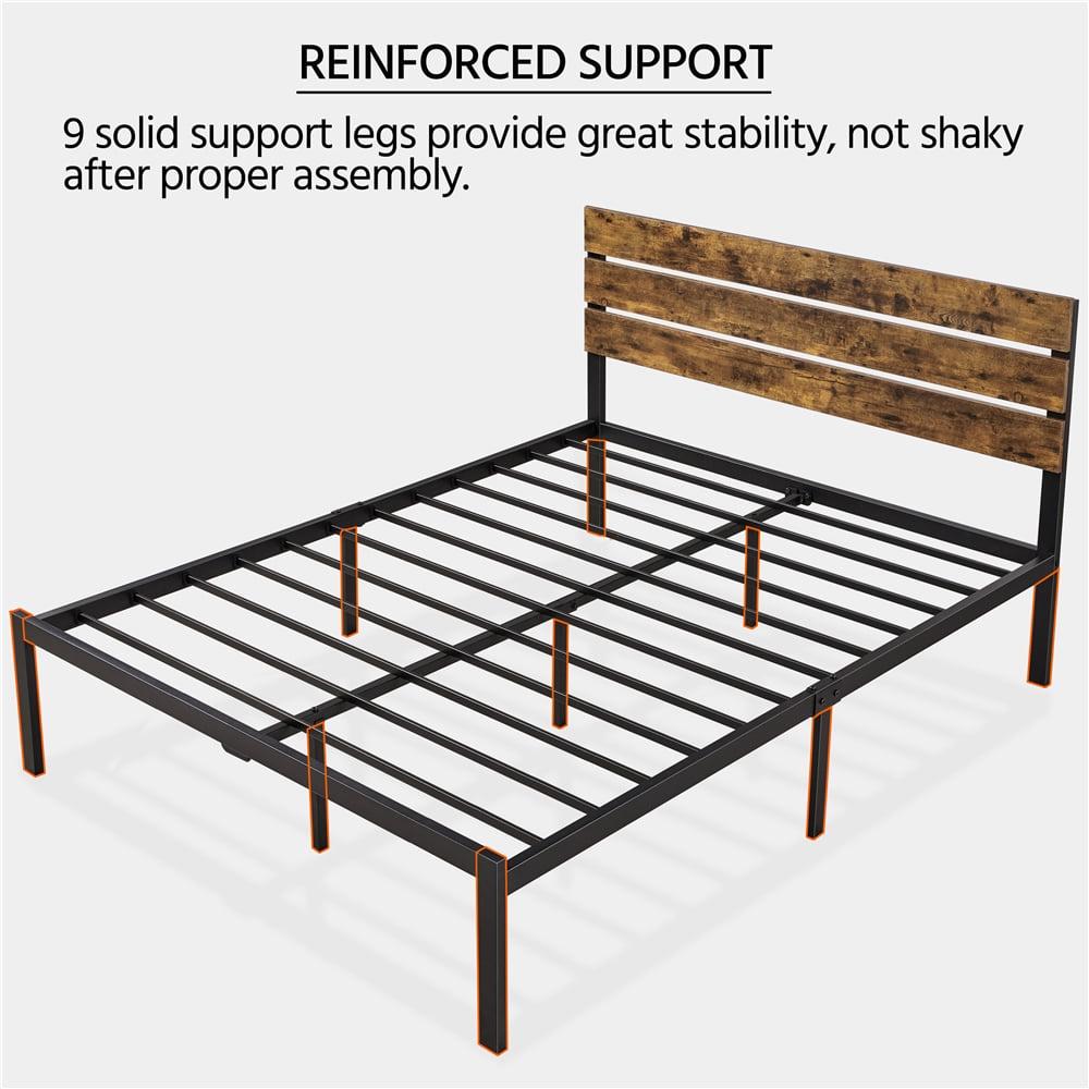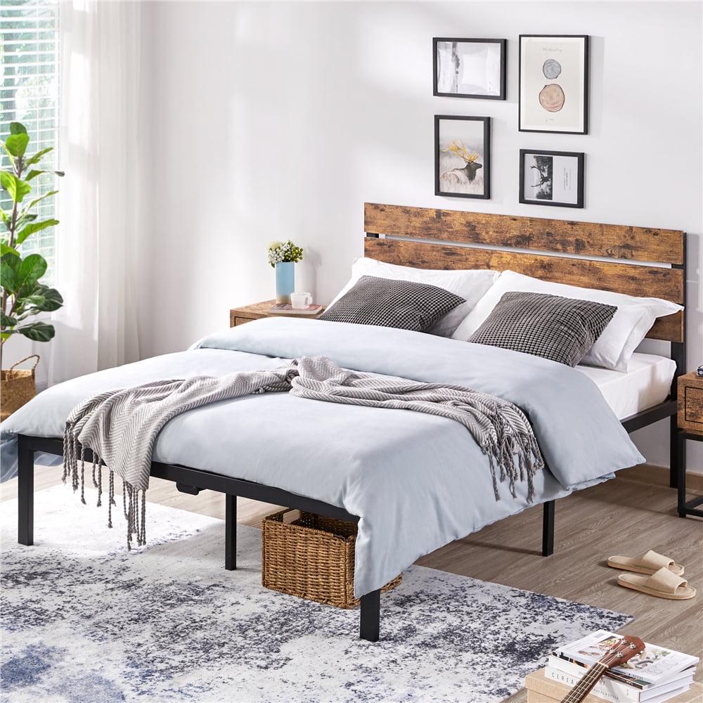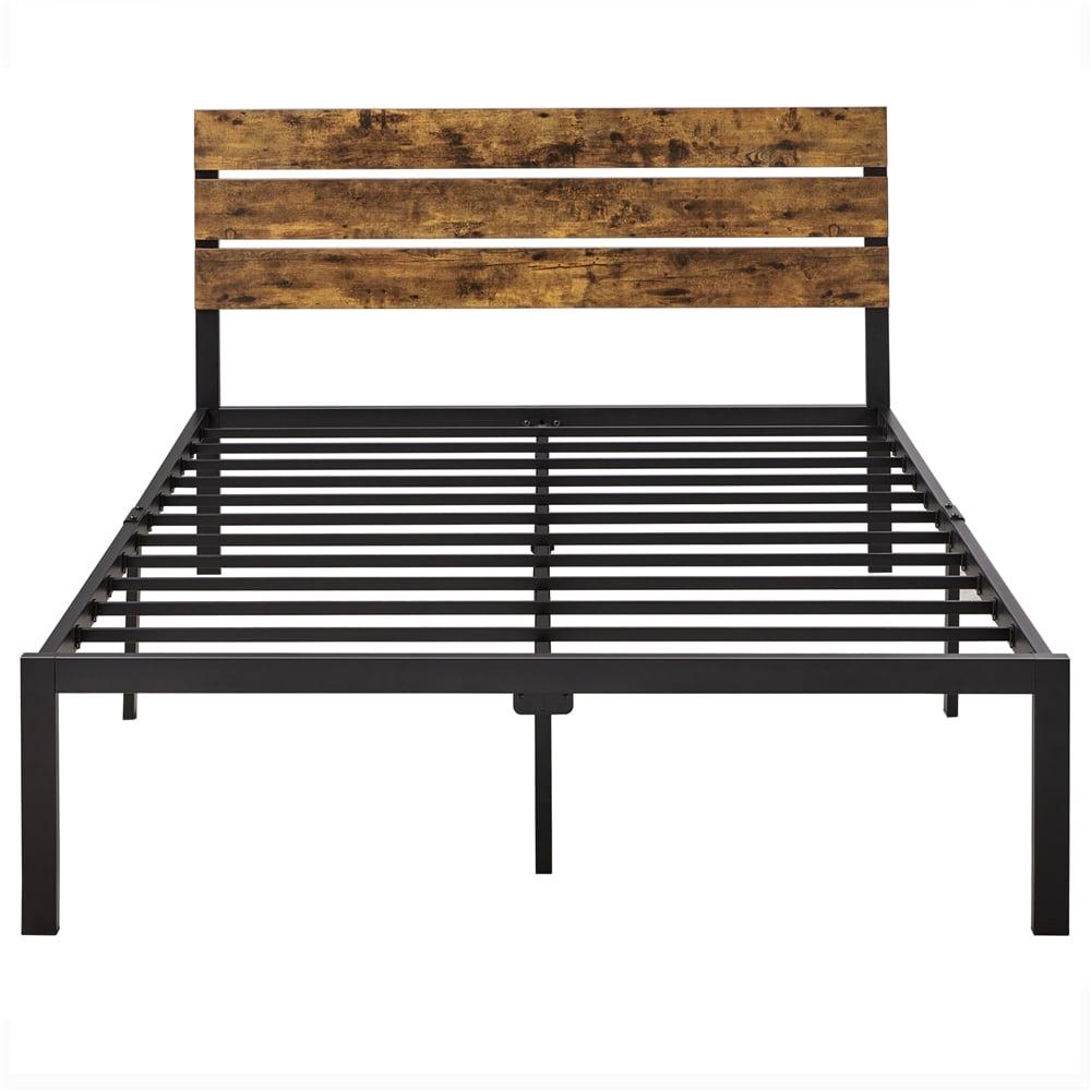 Easyfashion Metal Platform Queen Bed with Wood Headboard
