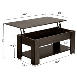 Easyfashion Modern 38.6 Rectangle Wooden Lift Top Coffee Table with Lower Shelf, Multiple Colors and Sizes