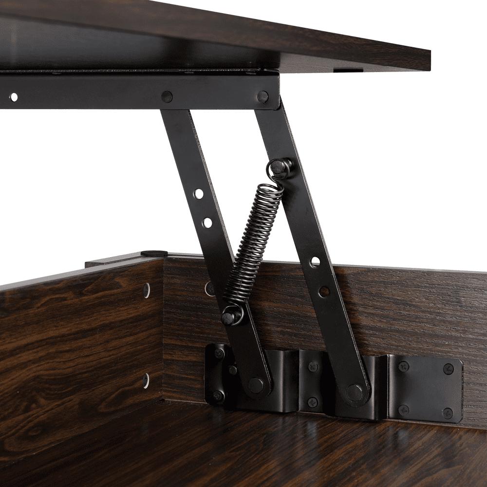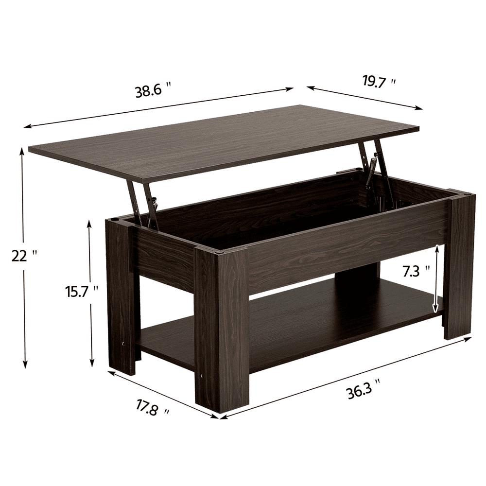 This coffee table is designed with a lift top, which can be easily adjusted to a suitable and comfortable height to use a laptop, write or dine while sitting on the couch. Under the tabletop, there is a large storage space for keeping your daily used items handy and clean. Made of high-quality materials and built in a solid and durable structure, our coffee table is strong and sturdy for your everyday use. This modern and contemporary table is simple in shape and chic in color, so it is compatible with any room style and decor. It is a practical and beautiful coffee table for small spaces and works great in the living room and office. After assembly, the dimensions are 38.6 x 19.7 x (16.5-21.7) (LxWxH).