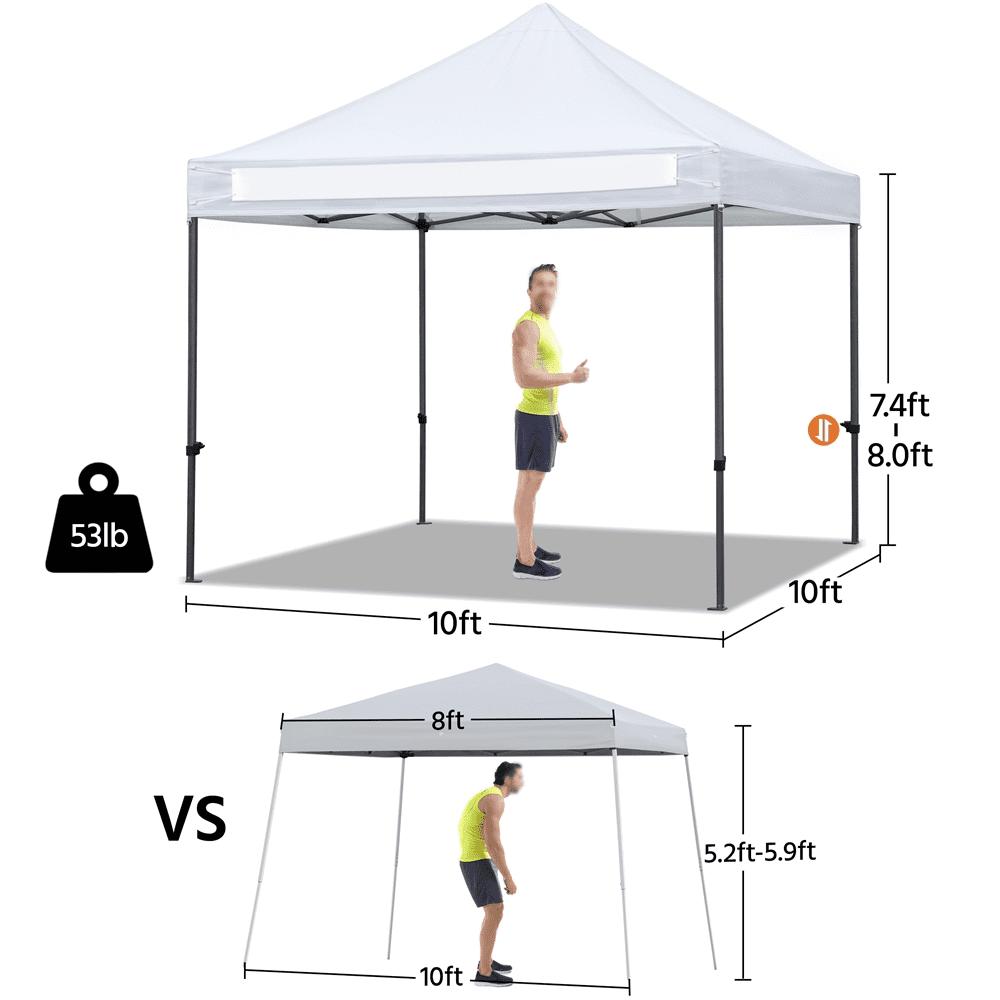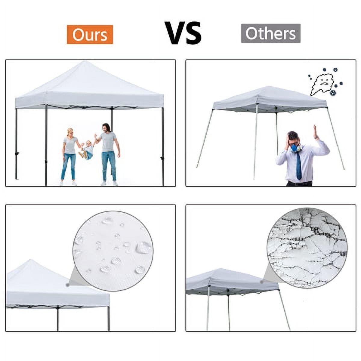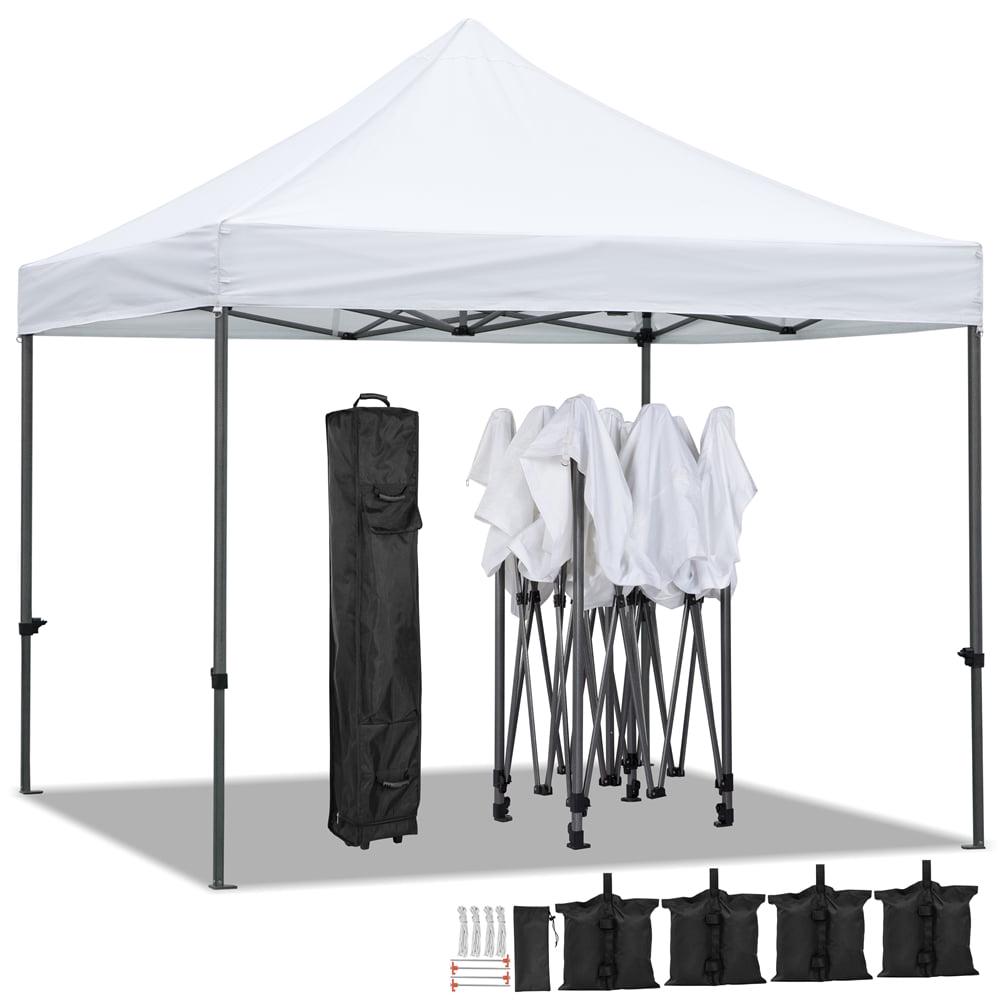 No matter it is rainy or sunny, you can always have fun with your friends under this waterproof heavy-duty commercial pop-up canopy! Let this pop-up canopy help you hold a perfect party or BBQ in the backyard, protecting from rain or ultraviolet. This commercial heavy-duty canopy is height adjustable for different needs. The thoughtful details of the pop-up gazebo make it very convenient to set up and disassemble. Also, a wheeled carry bag is provided for easy storage and portability. The folding pop up tent is perfect for outdoor sports, festival events, flea markets, parties, etc.