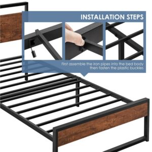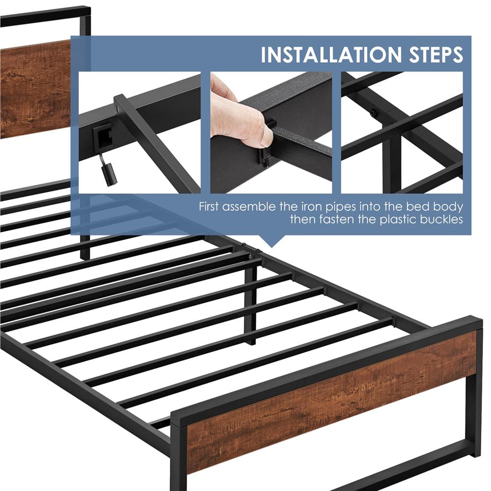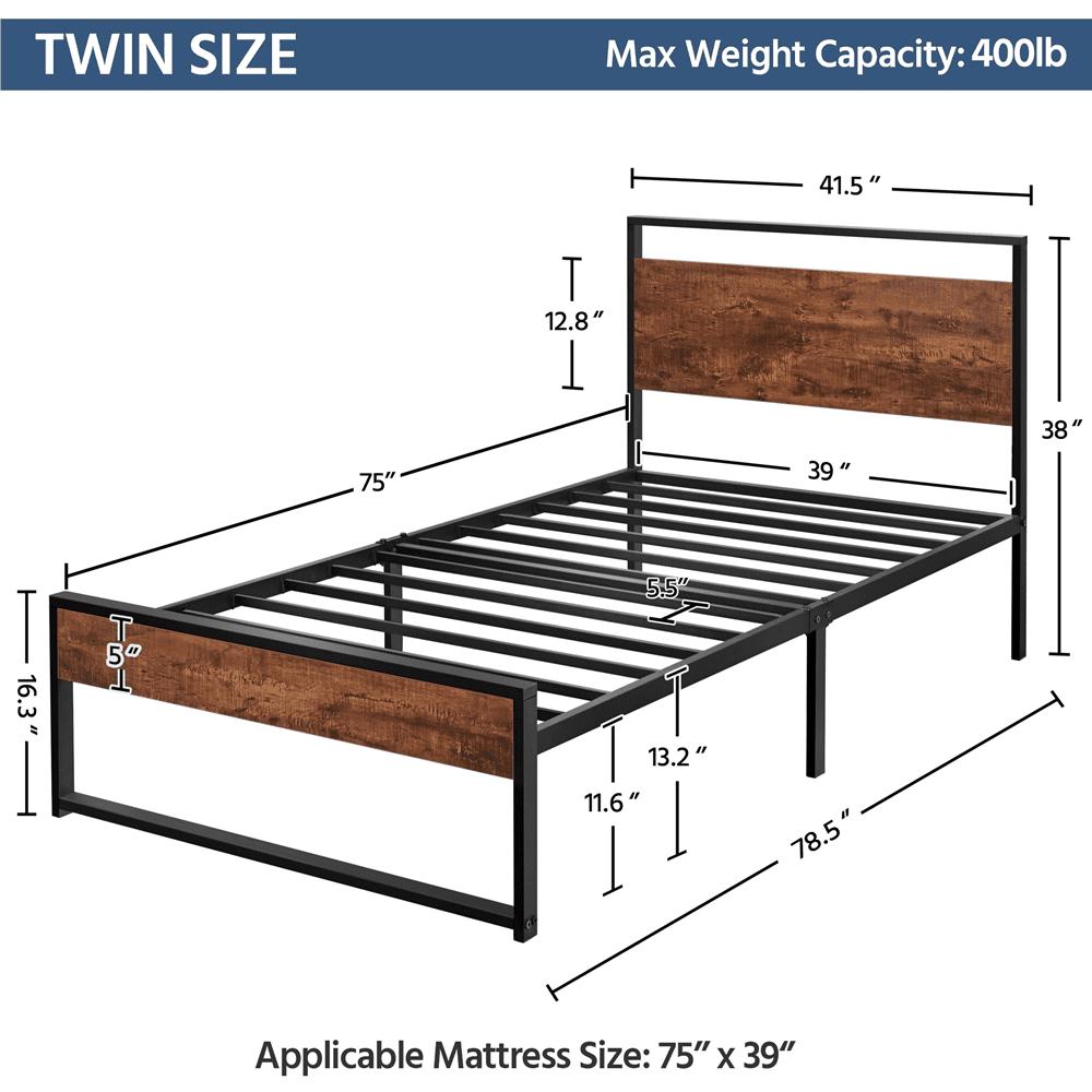 – Easyfashion Rustic Metal Platform Bed Metal Bed Frame with Headboard and Footboard, Twin: