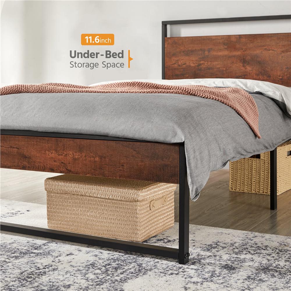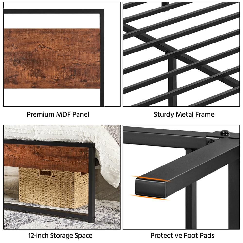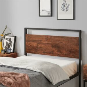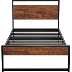 Easyfashion Rustic Metal Frame Base Platform Bed with Slat Support, Rustic Brown, Twin