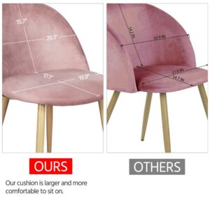 Easyfashion Set of 2 Mid Century Velvet Dining Chairs, Pink