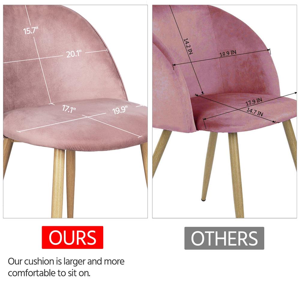 The dining chairs are attractive due to the stylish color and design. On the reverse of the backrest, the chair features grid lines, which makes the chairs fashionable and unique. Provide both comfort and beauty for you.The legs of the dining chairs are made of metal and covered by spraying plastics, which makes them like wood but very sturdy. The whole style perfectly matches the cushioned seat, durable, sturdy and good-looking.The dining chairs come with the footpads at the end of the chair legs. The footpads aim to achieve protection and the adjustment on uneven ground or floor.The package also includes a user manual, a screwdriver and matched fittings for your convenience. If you have any problems and questions, please feel free to contact us for further assistance.This set of 2 dining chairs are made of foam, nonwoven fabrics, velvet, plywood, and metal. Offer you a soft seat, comfortable backrest and durable metal legs. Enjoy your leisure time on these dining chairs. Each kitchen chair can bear up to 120kg/264.6lb.Our dining chairs are suitable for the living room, kitchen, restaurant, cafe, bedroom, office and so on. The unique color and stylish appearance will perfectly match your house style, making your house more alive and chic.