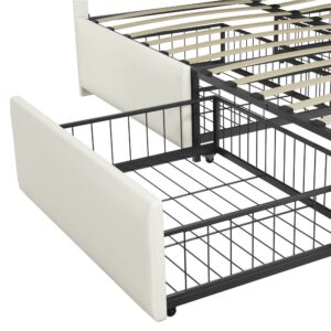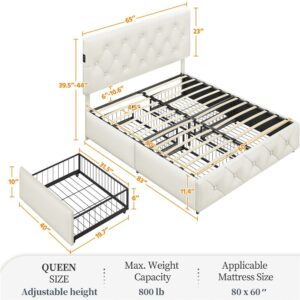 Easyfashion Upholstered Queen Bed with 4 Storage Drawers and USB Ports, Queen, Beige