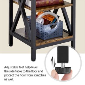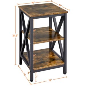 Easyfashion 3 Tier End Tables, Set of 2, Rustic Brown :