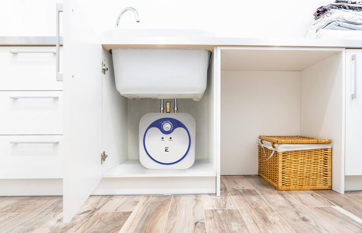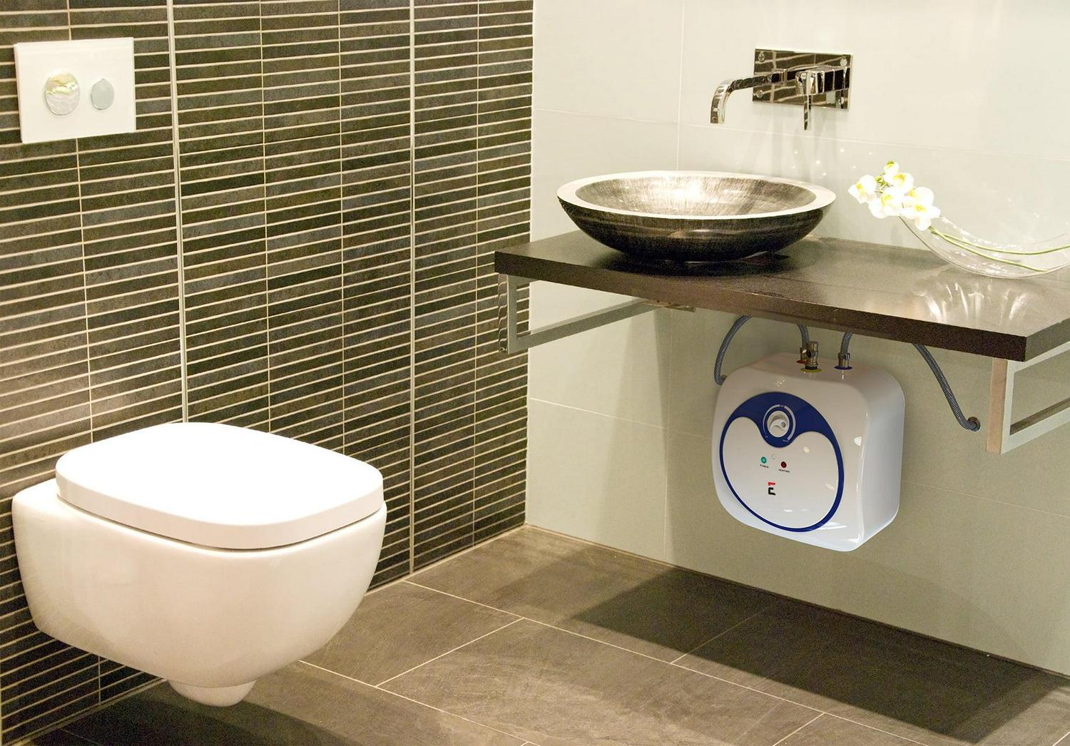 – Plumb in line with your existing water heater or use with standalone sinks. The EM-7.0 Gallon Mini Tank Water Heater is ideal for homes, cottages, kitchenettes, RVs, boats, utility rooms, apartments, condos and offices