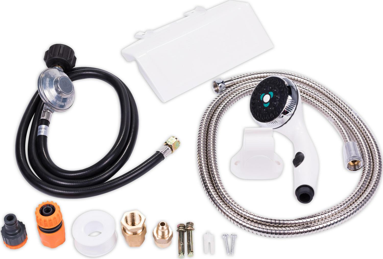 You get (1) Eccotemp L5 Tankless Water Heater and (1) Flojet 2.9 GPM 12-volt pump at a Discounted Price! The Eccotemp L5 Portable Tankless Water Heater is the original and best-selling portable water heater on the market today. You get instant, endless hot water wherever you are. The Eccotemp L5 Portable Tankless Water Heater is perfect for campsites, cabins or simply around the house. Wash your car, wash your boat, take a hot shower, or even wash your horse. You can add the Eccotemp L5 Portable Water Heater to a pressure washer for an even better cleaning. This model includes an electronic ignition powered by 2 “D” cell batteries making it great for off-grid or other areas where electricity is not readily available. The ideal operating range for the Eccotemp L5 Portable Tankless Water Heater is 20~80 PSI. The system also works great on modified water systems such as a 12-volt pump. The L5 will offer a 30 to 35-degree rise at 1.5 GPM.