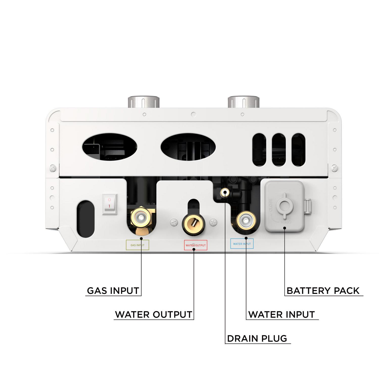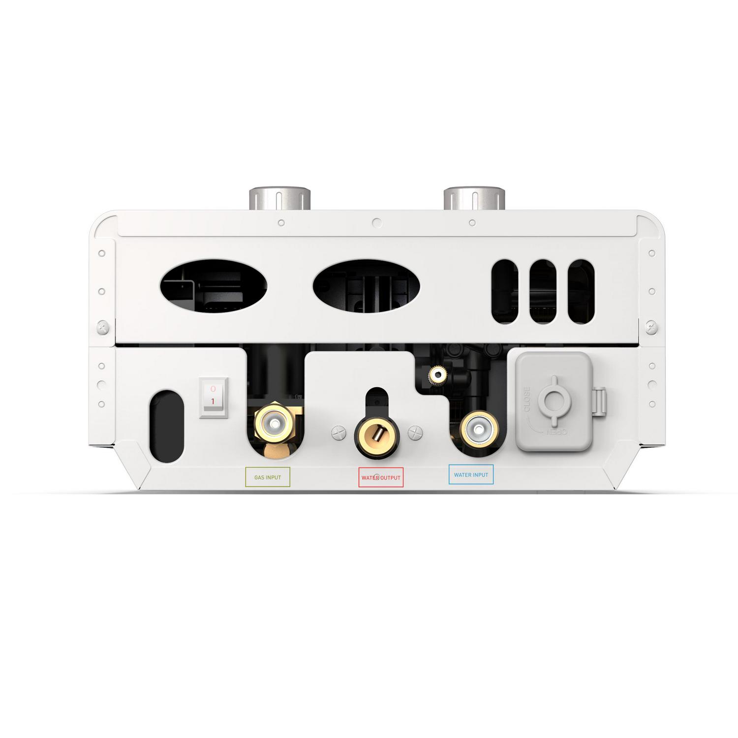 – Beautiful tri-coat pearl white powder coat finish, modern digital display and all-weather rain cap make this water heater durable for frequent use