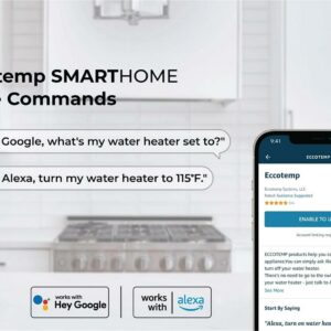 – Patent Pending, SmartHome ready, compatible with Amazon Alexa and Google Assistant. The Eccotemp SmartHome app allows you to adjust temperatures, turn your mini on/off and access to advanced energy usage statistics using advanced voice controls.