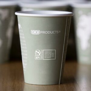 Stock your beverage station with these plastic hot cups. The world design adds a unique look to each cup, and the 12-ounce capacity is perfect for serving coffee, tea or hot cocoa. With 1000 pieces in each carton, these Eco Products plastic hot cups provide an ample supply for cafeterias, break rooms and office kitchens.
