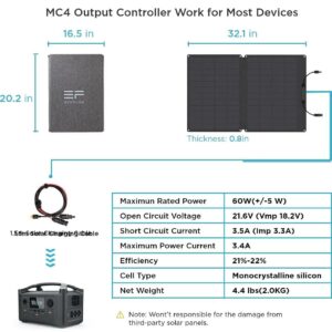 EcoFlow 60W Portable Solar Panel for Power Station, Foldable Solar Charger with Adjustable Kickstand, Waterproof IP67 for Outdoor Camping,RV,off Grid System