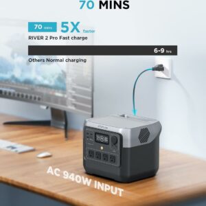 EcoFlow RIVER 2 Pro (Refurbished) beats the industry charging speed standard, fully charging in only 70 minutes.That’s 5x faster than other portable power stations on the market and 27% quicker than previous generations. Fully charge RIVER 2 Pro (Refurbished) while you pack your bags, so you’ll always be ready for a last-minute trip.