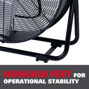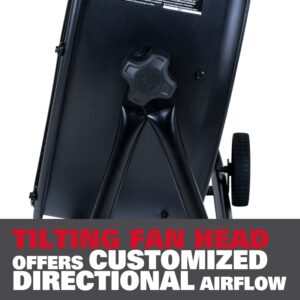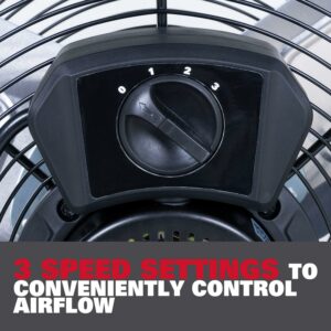 – 3300 CFM for maximum airflow, Non-skid 5 inch rubber wheels with convenient side handles, 10 ft power cord and 3-Speed setting via rotary switch