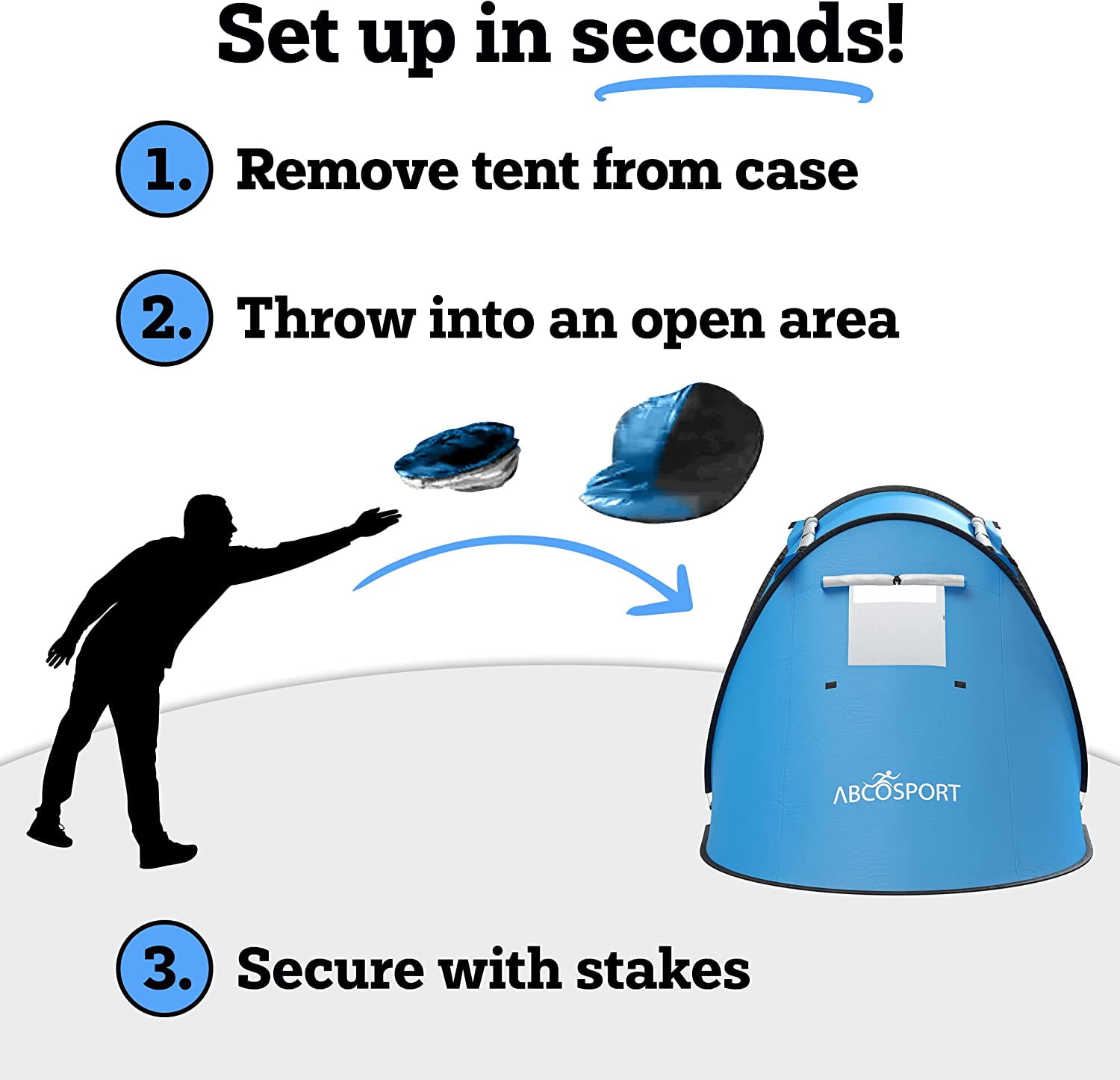 EcoSport 88.6″ x 47.2″ Beach Tent: Effortless set up – Pops open in the blink of an eye into a ready-to-use camping and lounge tent, and easy to fold back into a compact form – Abco Pop up tent is ideal for casual camping and accommodates 1-2 people. Set up your tent instantly! Double doors – With double doors on both the left and right side, it’s easy to step out from either side. Moreover, a combination of inner zippered screen plus outer zippered nylon layer give an ability to easily switch between high breathability and complete privacy. High breathability – a mesh window on both the front and back allow for air circulation while the solid nylon flaps over the windows allow for privacy. Further, opening the mesh windows allows you to enjoy your surroundings from inside the tent. Carry bag & accessories – Comes with a carry bag that’s ideal for storage and easy portability. It also comes with a small bag for accessories to keep them organized Best Use – This product is not meant to be subject to storm conditions or long periods of rain! Use this on a casual camping trip or set it up on the beach for shelter from the sun!