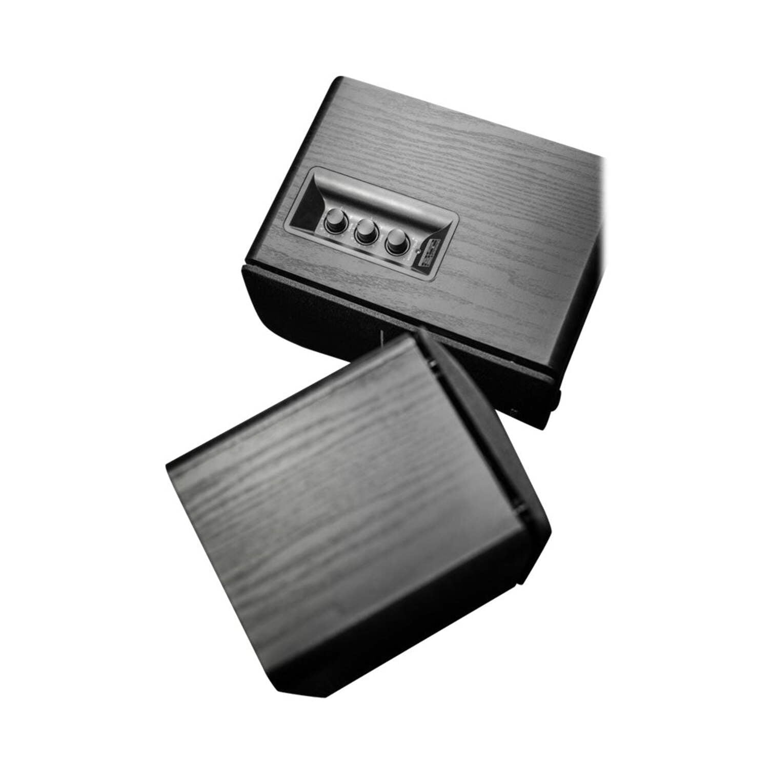Do you love the classic Edifier R1280 powered bookshelf speakers? Then you’ll love the R1280DB version that adds Bluetooth connectivity as well as optical and coaxial inputs! Or, if you’re new to Edifier, you’ll find these Black Bluetooth bookshelf speakers have the specs needed for the quintessential modern listening experience while the clean wooden finish of the leave a lasting impression of elegance and luxury. Bass, treble, and volume dials are located on the side panel of the active speaker for easy access. The included wireless remote lets you easily switch between inputs, adjust volume, turn them on or off. A special section provides Bluetooth playback controls such as play, pause, etc.