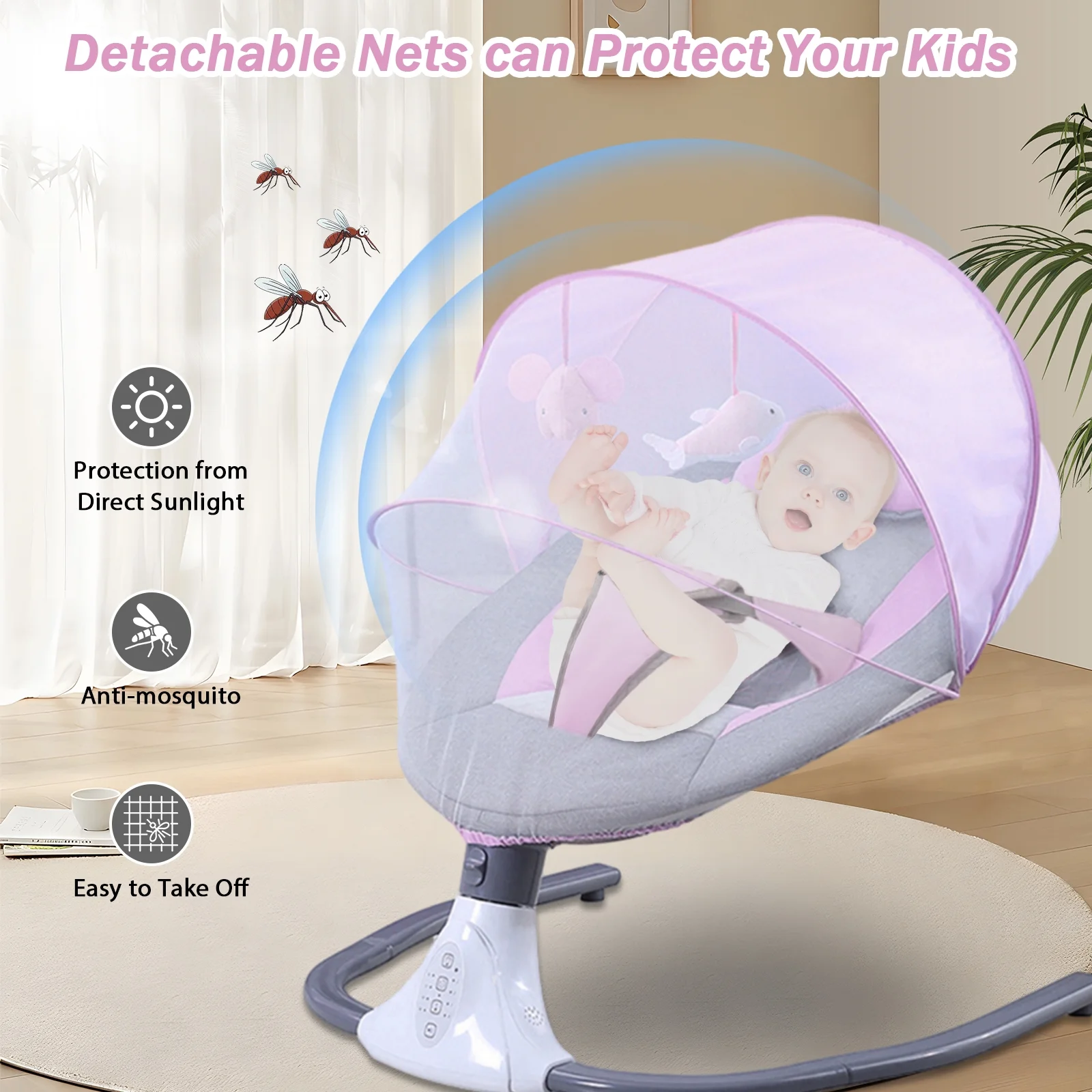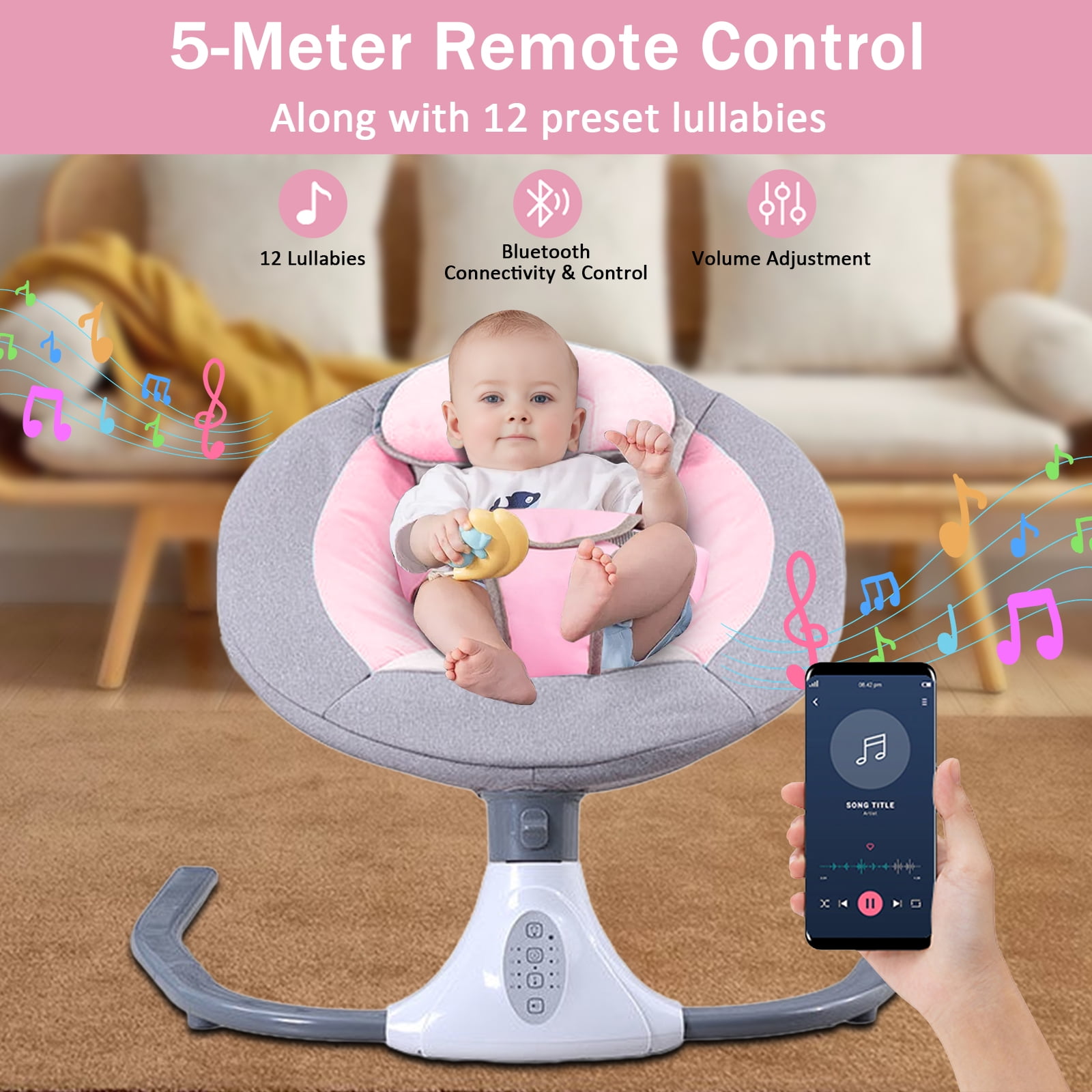 Beuway Electric Baby Swing for Infants – Bluetooth Music Speaker with 12 Lullabies,4 Speeds,4 Timers,Remote Control, Pink