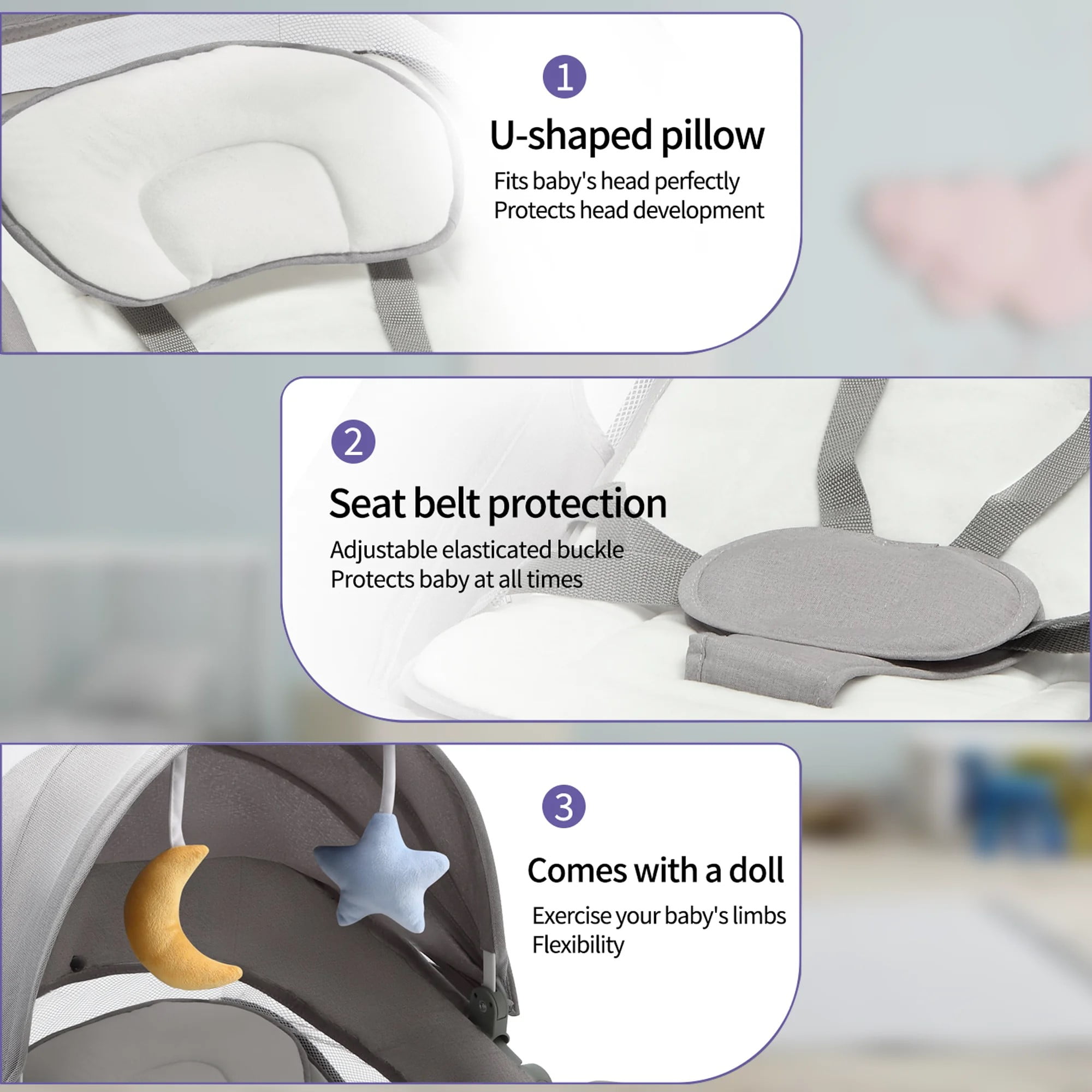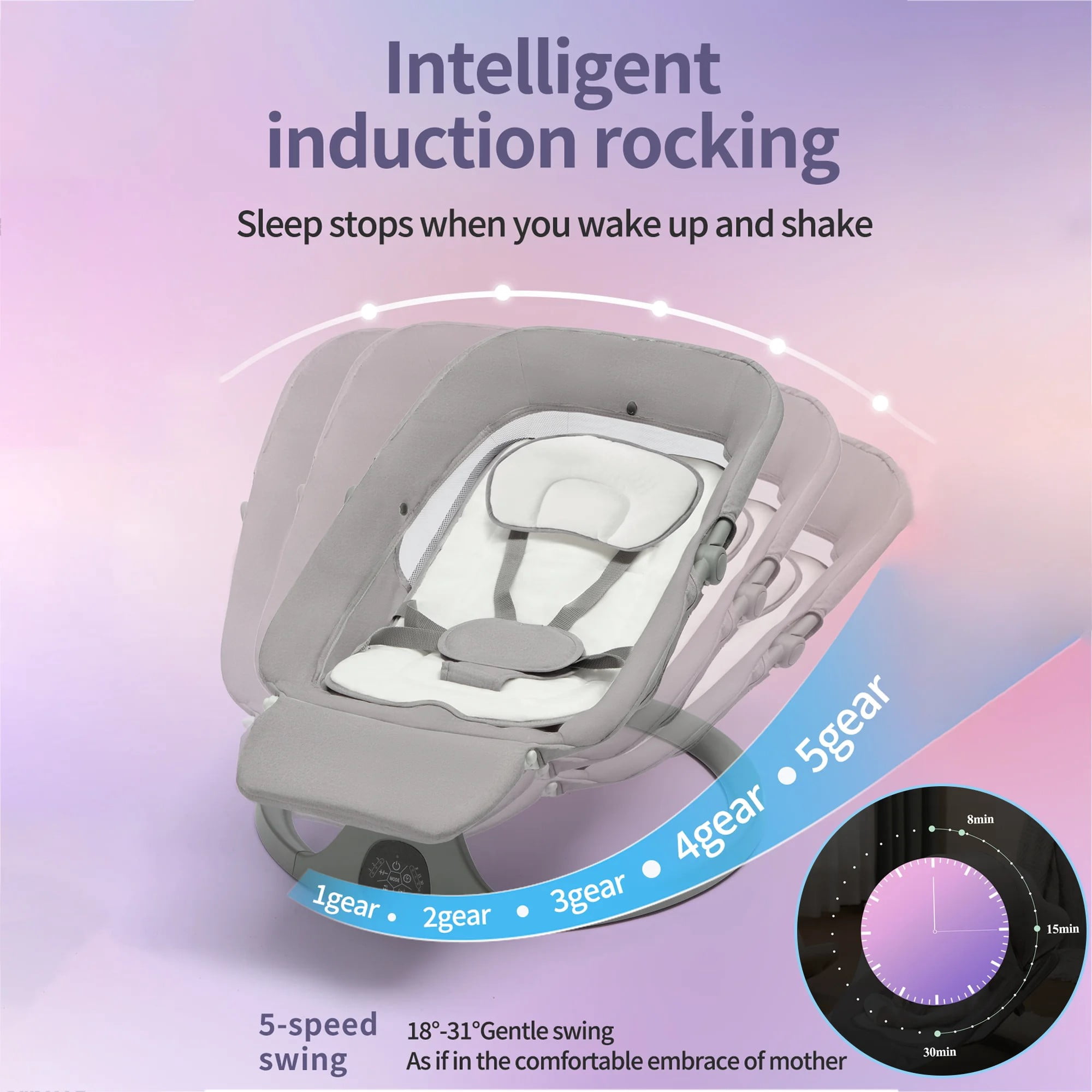 Electric Baby Swing with Footrest and Dinner Plate for Newborns Infants Portability: Lightweight and easy to move. Dinner Plate Accessory: Included for convenient feeding. Adjustable Reclining Seat: Can be adjusted to a 25° angle for comfort. Extended Footrest: Provides additional comfort and prevents slipping. Bluetooth Music Streaming: Allows for music to be streamed directly to the swing. Swing Speeds: Offers 5 adjustable swing speeds. Sun Protection: Includes a sunshade. Mosquito Net: Protects against insect bites. This product comes beautifully packaged in a premium gift box, perfect for gifting to new parents or as a special treat for your own little one. The elegant presentation adds a touch of sophistication and thoughtfulness, making it an ideal choice for any baby shower or birthday celebration. The gift box not only enhances the overall appeal but also ensures that the swing arrives in pristine condition, ready to provide comfort and joy to your baby.
