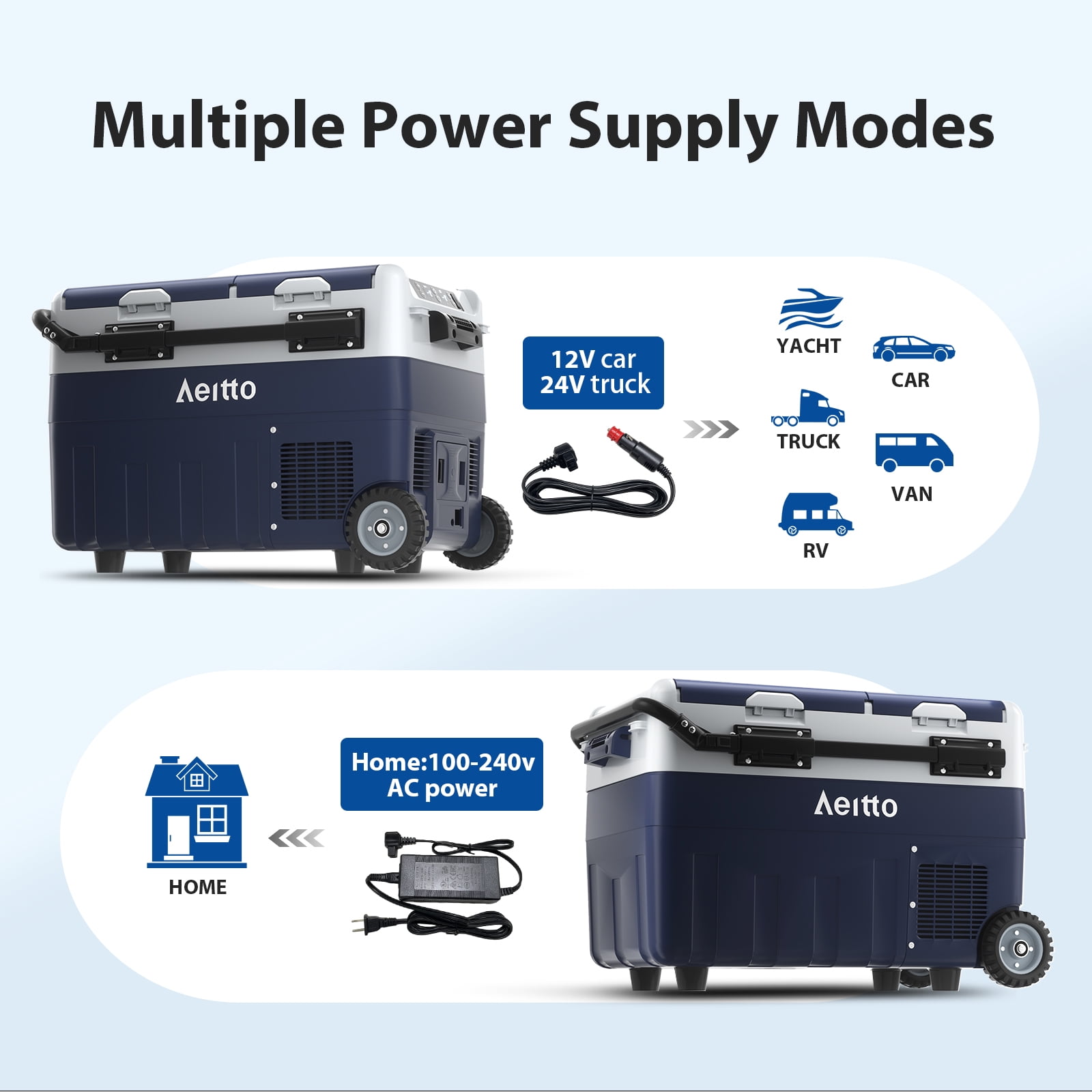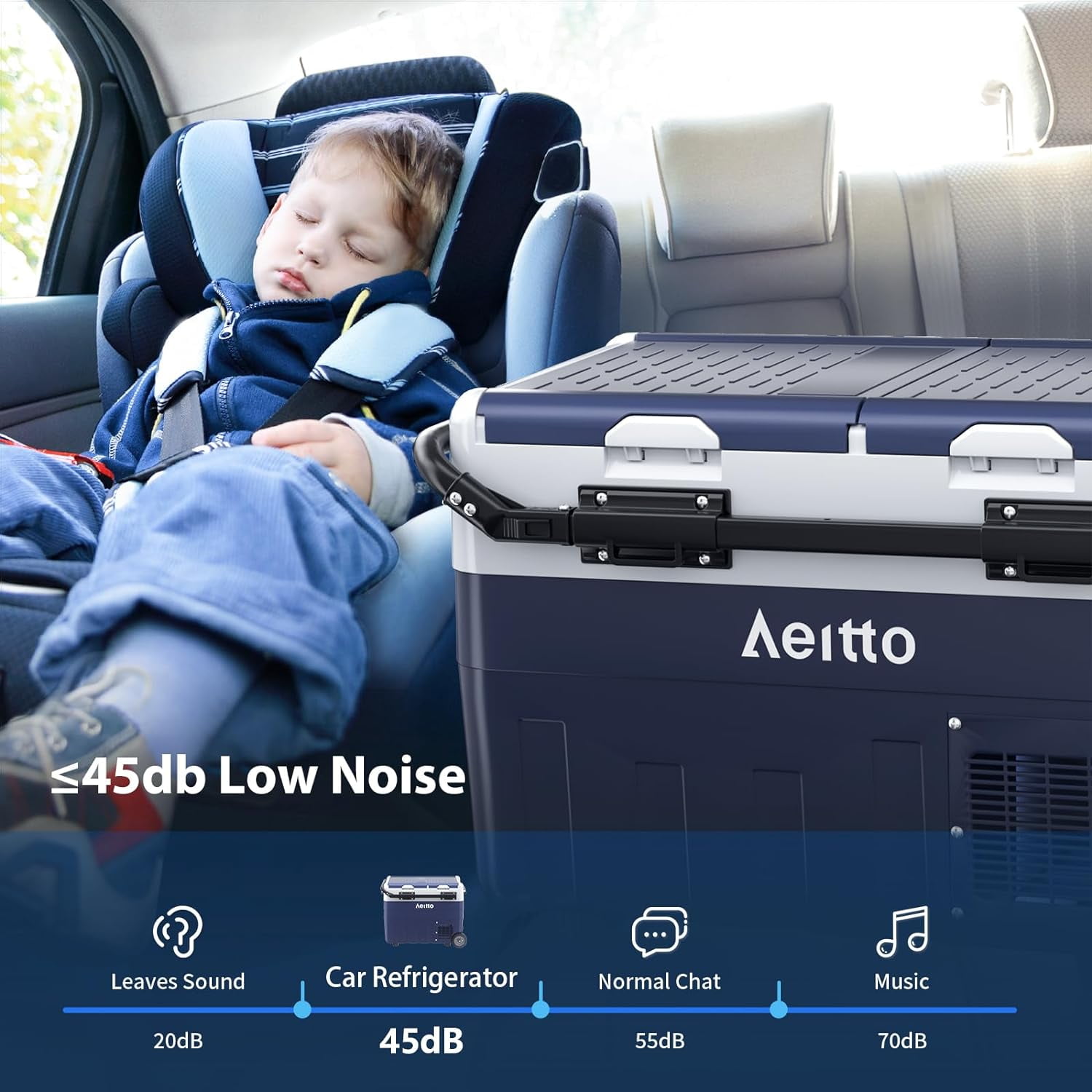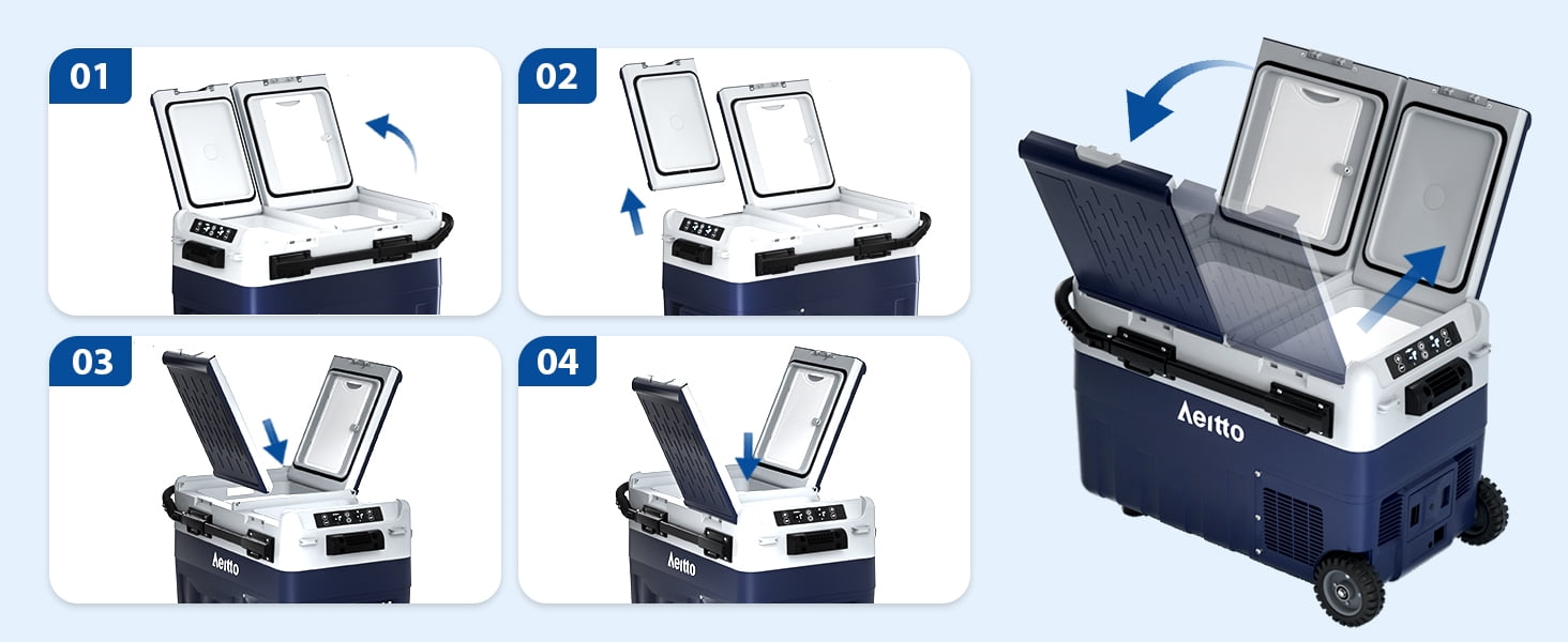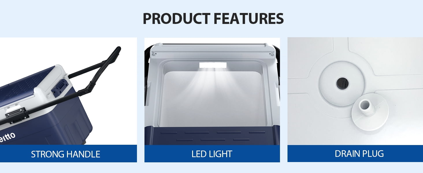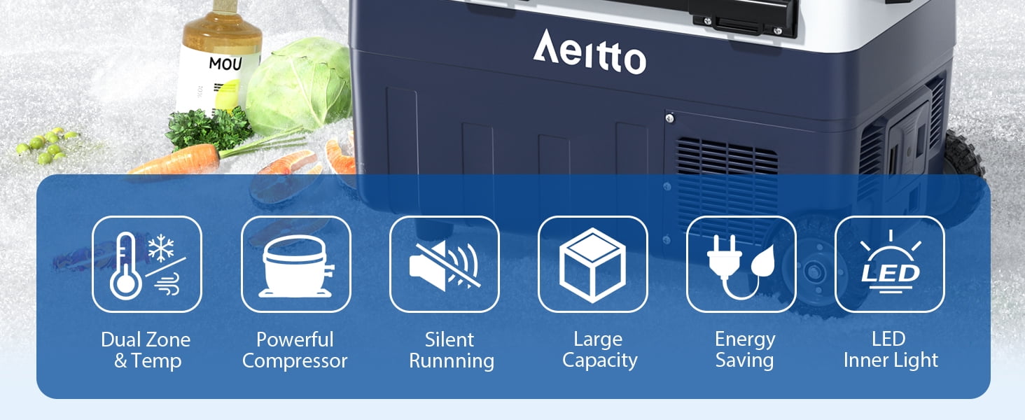❄️【𝑫𝒖𝒂𝒍 𝒁𝒐𝒏𝒆 𝑻𝒆𝒎𝒑 𝑪𝒐𝒏𝒕𝒓𝒐𝒍】The Aeitto 12V Car Refrigerator features dual-zone independent temperature control, it can be used as both a freezer and a cooler, or one as a freezer and the other as a cooler. With a cooling range of -4°F to 68°F (-20°C to 20°C), it can fulfill all your freezing and chilling needs. The dual-zone feature provides optimal storage flexibility, ensuring that different types of food, beverages and pharmaceuticals are kept at the ideal temperature. ✅【𝑬𝒏𝒆𝒓𝒈𝒚 𝑺𝒂𝒗𝒊𝒏𝒈 & 𝑩𝒂𝒕𝒕𝒆𝒓𝒚 𝑷𝒓𝒐𝒕𝒆𝒄𝒕𝒊𝒐𝒏】This car refrigerator features MAX and ECO modes and three battery protection levels. MAX mode is able to cool quickly to meet your needs for cooling drinks and food in the hot summer and the ECO mode maintains the ideal cold temperature with lower energy consumption. Battery protection function with three levels of low, medium and high prevents the car from not starting due to low battery level, ensuring the safety and longevity of the car’s battery. 💪🏼【𝑼𝒔𝒆𝒓-𝑭𝒓𝒊𝒆𝒏𝒅𝒍𝒚 𝑫𝒆𝒔𝒊𝒈𝒏】The freezer is equipped with retractable tie rods, sturdy wheels, and the handles to make it easy to move around at the campground or on the beach. The built-in utility cutting board to handle ingredients conveniently at all times. Built-in LED lighting improves visibility. The USB charging port for charging phones or other electronic devices. The removable refrigerator door makes it easy to clean. You can also change the opening method according to your needs or habit. 🚙【𝑳𝒐𝒘 𝑵𝒐𝒊𝒔𝒆 𝒂𝒏𝒅 30°𝑨𝒏𝒕𝒊-𝑺𝒉𝒂𝒌𝒊𝒏𝒈】This car refrigerator offers the ultimate in comfort for your journey with its superior performance and design. It utilizes low-noise technology and operates at less than 45 dB, making its presence virtually imperceptible while you are driving or resting. In addition, the refrigerator is equipped with a 30-degree shockproof function, so it can work stably on rough roads no matter driving a truck, RV, VAN, SUV, etc., to ensure the safe storage of food and drinks. 💖【𝑨𝒆𝒊𝒕𝒕𝒐 𝑾𝒂𝒓𝒓𝒂𝒏𝒕𝒚 𝑺𝒆𝒓𝒗𝒊𝒄𝒆】We provide 12 months warranty services and 7*24 hours online consultation services for this car refrigerator, please feel free to contact us if products have any problems. We promise to solve the problem for you. Aeitto specializes in providing buyers with high-quality small appliance products and the best user experiences.