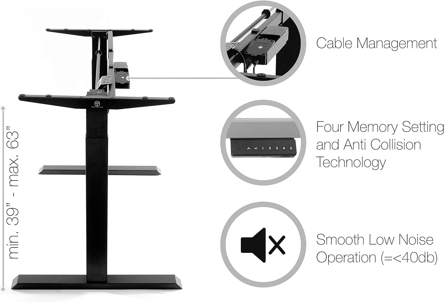 Powerful Lift System: Easily adjust the height at a speed of 1.5 inches per second (frame only, the desktop is not included). Min height: 28 inches. Max Height 48 inches Customize your desktop: build a custom desktop that reflects your taste and personality. The frame width for both can adjust from 39 to 63 inches. Digital Control Panel: The OF-RM60-B provides 4 memory height settings, anti-collision safety, and an ultra-responsive digital panel. Quiet Motor: Equipped with a powerful motor designed to hold up to 180LB of gear while making minimal noise during height transition. You can comfortably use this electric standup desk in an open work environment, at home or in the office, without having to worry about disturbing others. 3-Year Warranty: Purchase with peace of mind knowing all components are covered with a 3-Year Manufacturer Warranty.