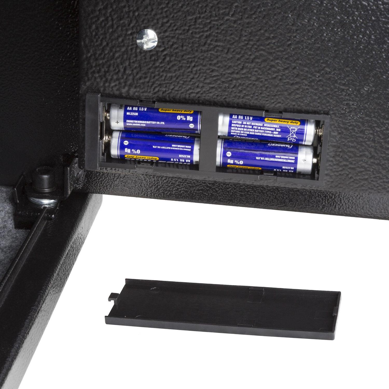 Secure your most valuable documents and possessions with the Electronic Fingerprint Safe by Stalwart. The interior of this strongbox is large enough to store anything from passports and other important documents to jewelry and handguns. The keypad is powered by the included 4-AA batteries and can be programmed to accept a 3 to 8-digit pin code. The biometric reader provides an extra layer of security and can store up to 32 fingerprints. You can program multiple angles of your fingerprints for quick and guaranteed access, or the fingerprints of trusted individuals to access the safe in case of emergency. There are also 2 manual override keys included with this safe for emergency access. The included hardware makes it possible to secure this locker to either the floor or wall, ensuring that the safe can t be stolen and opened elsewhere. The safe is small enough to store in a closet, making it great for college students to store important paperwork and extra cash, worry free. The cold-rolled steel walls provide ample protection for all your valuables. SATISFACTION GUARANTEED- Stalwart is committed to providing the consumer with the absolute best price and value on all of our products, which we ensure by applying a rigorous quality control process. NOTE: This is an exclusive product of Stalwart and ONLY Electronic Fingerprint Safes by Stalwart are GUARANTEED to be genuine IMPORTANT: Avoid buying counterfeit products and transacting with unauthorized sellers. Look for our logo on the packaging for every one of our products. Stalwart is a registered trademark protected by U.S. Trademark law and will be vigorously defended.