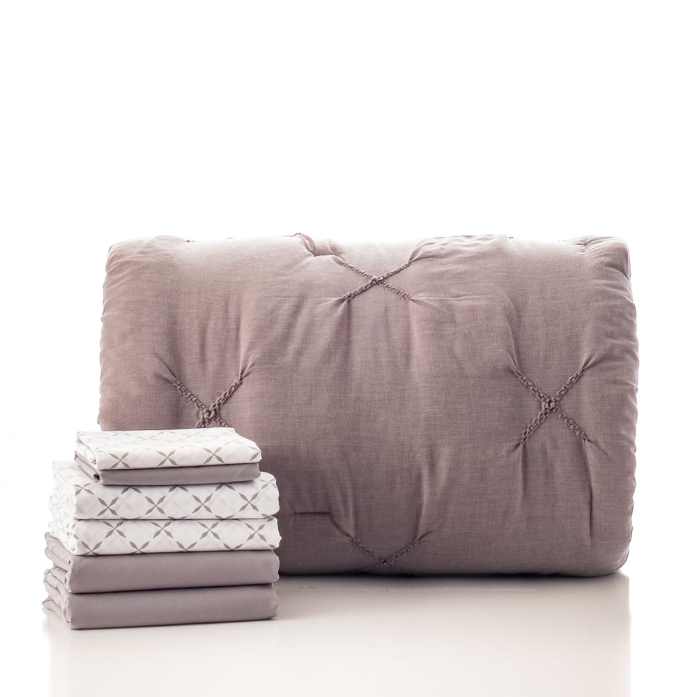 Experience a fabulous night’s rest with our Elegant Comfort Hi-Loft Luxury 10-Piece Bed-in-a-bag comforter set! Bed-in-Bag Comforter set includes Bed Sheet Set with Double Sided Storage Pockets on the Fitted Sheet! You can put your glasses, remote controls, cell phones, IPADs, medicines, reading books, pens, or napkins if you ever get sniffles. Ruched Ruffle Pleated design with double-needle sewn thru construction eliminates shifting for evenly distributed warmth. Filled with 100% fiber for superior loft and all-year-round comfort.