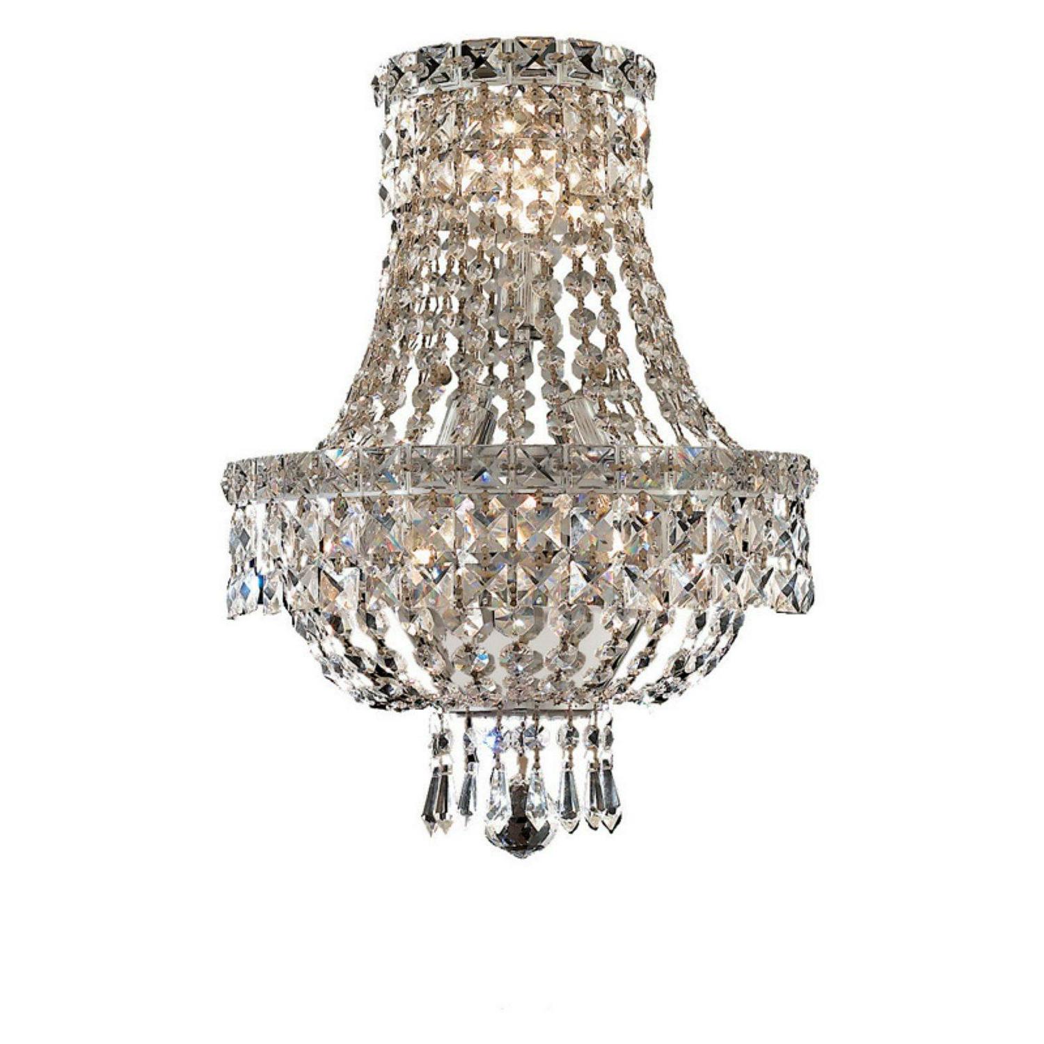 Make your hallway enchanting by lighting it with this Elegant Furniture & Lighting Tranquil 2528 Wall Sconce. Elegant crystals grace all areas of this wall sconce. It’s available in a range of crystal styles and select finish options. This wall sconce requires three 40-watt candelabra base bulbs (not included).