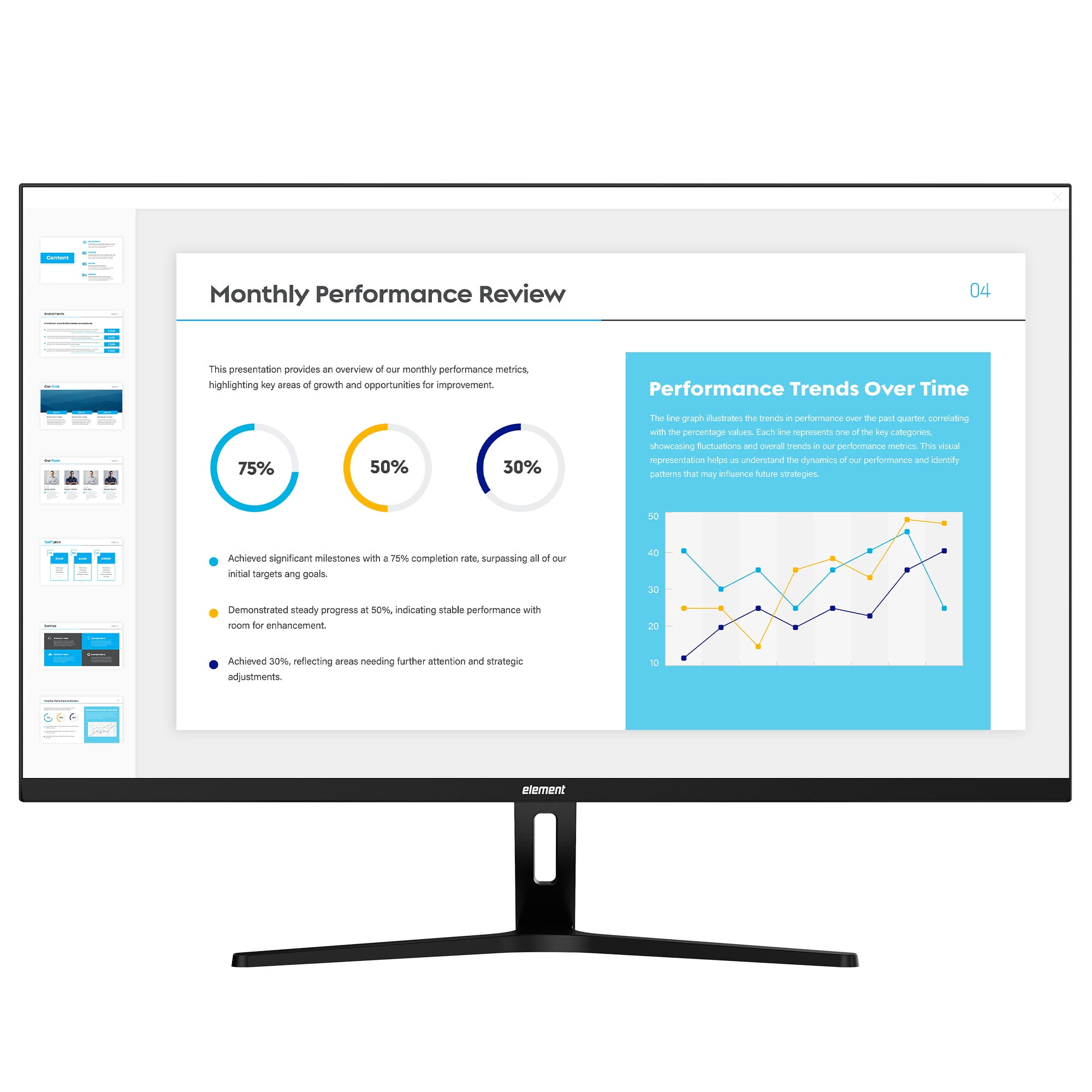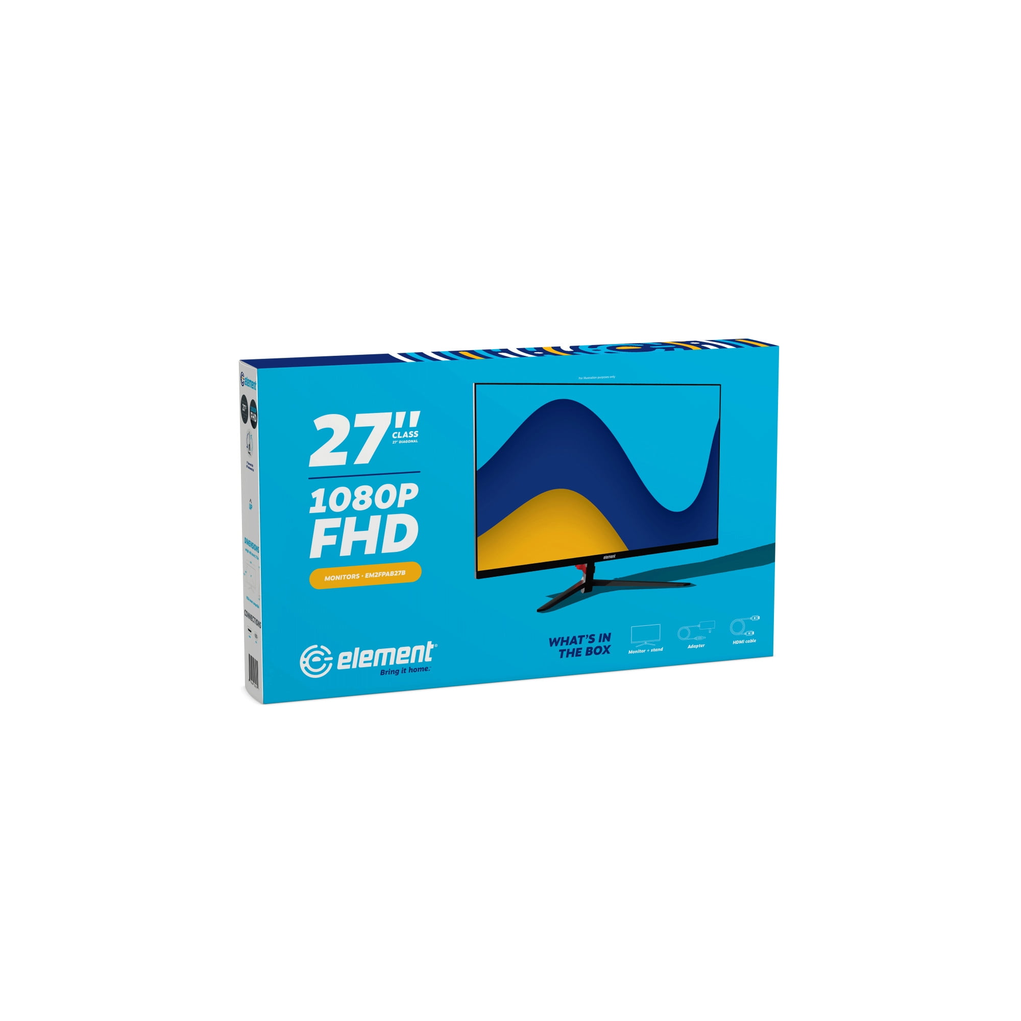 1080P Full HD Resolution – This Element monitor offers a 1080P, full high-definition screen for a clear, vivid picture. Whether you’re watching videos, video chatting, or playing basic games – you’ll find this full HD monitor provides a crisp viewing experience. IPS Panel – The IPS back lit panel provides great viewing angles and color gamut. 3 Sided Frameless Bezel – Element’s frameless monitors offer the best of both worlds – style and performance. A slim frame and virtually no bezel make this monitor less noticeable, allowing it to integrate seamlessly into your existing décor. Enjoy an edge-to-edge screen with fewer distractions. HDMI and VGA Connectivity – Expand your view and get more done by adding a second or third monitor to your office set-up with easy HDMI and VGA connectivity. HDMI makes it easy to connect your own external speakers to this monitor. Tilt Adjustable – Adjust your new monitor between -5 and 15 degrees to get the right viewing angle. VESA Mountable – VESA mounting holes on the rear panel let you customize your desk setup to fit your needs. 2-Year Warranty Available – Enjoy a 2-year warranty when your new product is registered through Element’s website within 90 days of purchase.