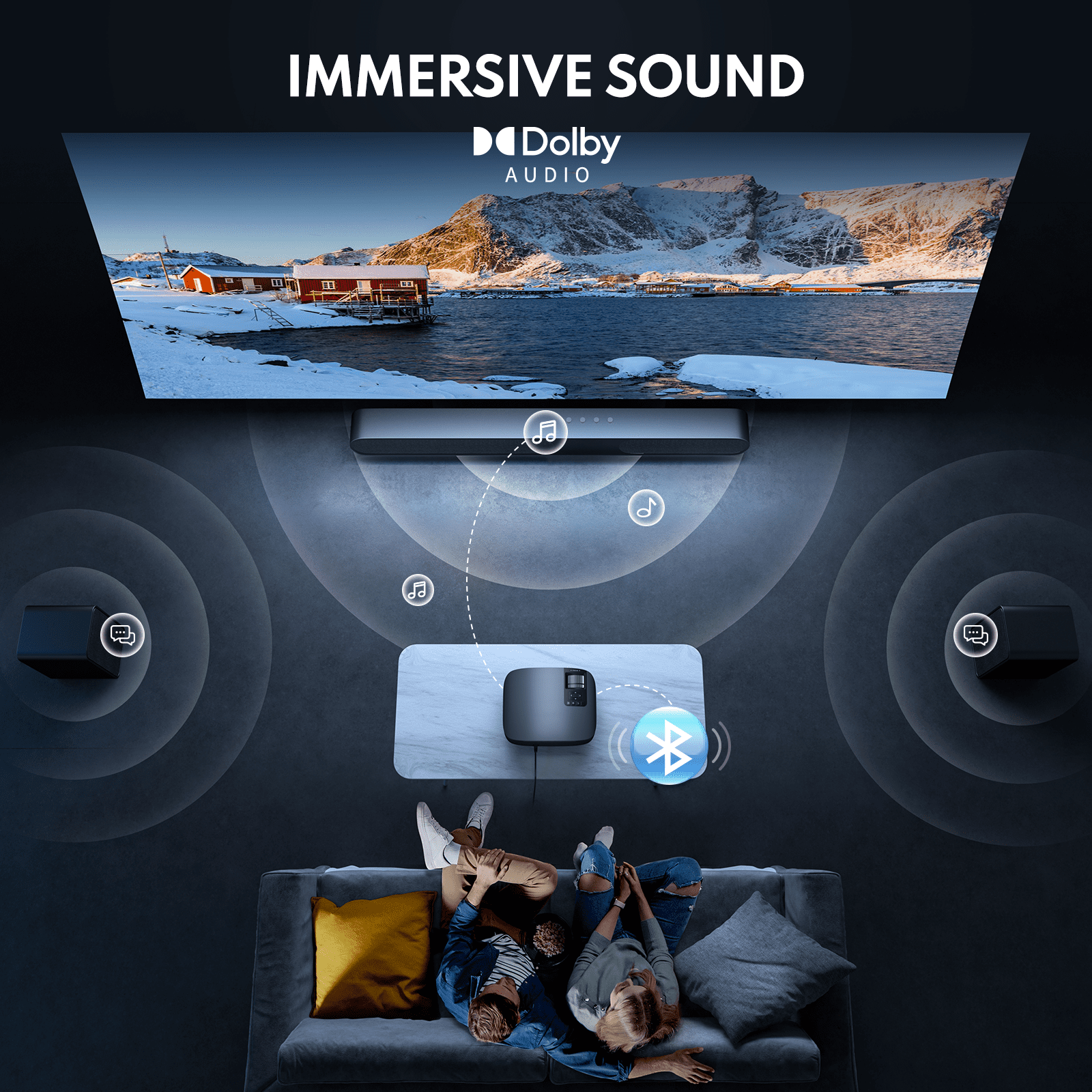 Elephas’s 4K mini projector delivers 600 ANSI Lumen brightness and features a 6-layer high refractive glass lens for vivid, clear visuals. This portable projector supports 2.4G/5G WiFi and Bluetooth for seamless streaming. Enjoy a 300-inch screen with zoom, Dolby Audio, and Hi-Fi stereo speakers. With native 1080p resolution and 4K support, it provides an immersive indoor and outdoor home theater experience.