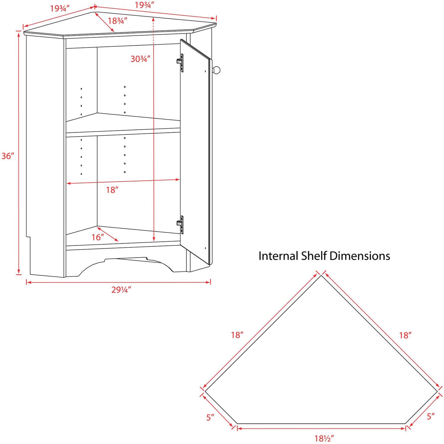 Make the most out of your unused corner spaces. This sophisticated, sturdy, and functional 36-inch tall corner cabinet includes one adjustable shelf to maximize the storage and organization of your personal items. This multipurpose cabinet is the perfect addition to any kitchen, entryway, bedroom, or any other place you need extra storage. A solid MDF door finished with a soft profiled edge ensures that your room looks clean and remains uncluttered.