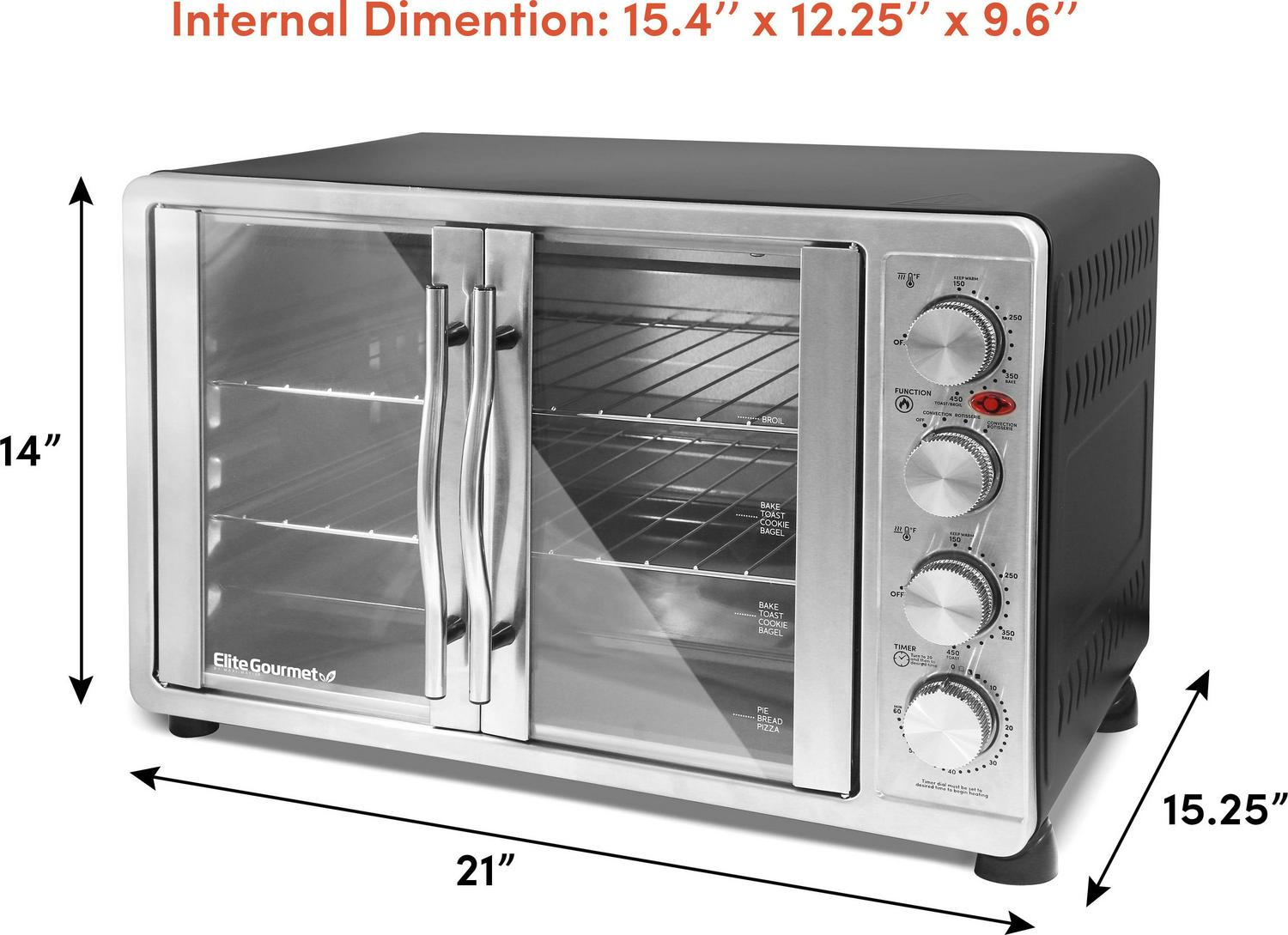 Elite Gourmet ETO-4510M New Double Door Oven with Rotisserie and Convection