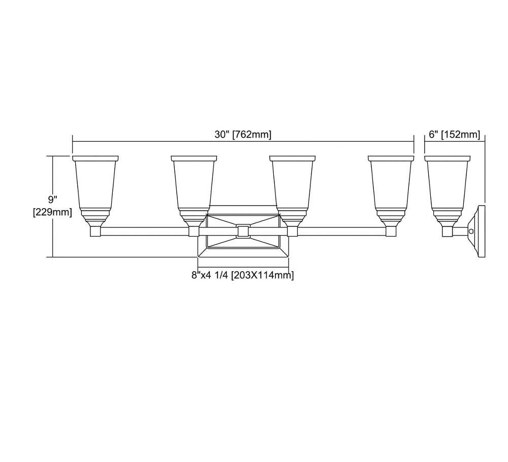 Thomas Lighting-CN573412-Collection: Sinclair, Material: Metal, Finish Color: Polished Chrome, Width: 30″, Height: 9″, Depth: 6″, Backplate Width: 8″, Backplate Length: 4.5″, Lamping Type: Incandescent, Number Of Bulbs: 4, Wattage: 100 Watts, Moisture Rating: Dry Rated, Desc: Style: Mid-Century Modern / Shade Included: Yes. ,-Sinclair – Four Light Bath Vanity-Polished Chrome Finish