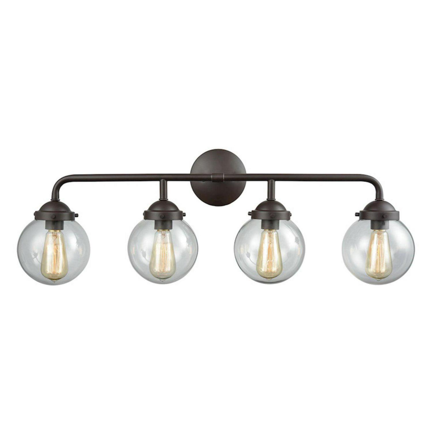 Maximize the amount of light in your industrial bathroom with the Thomas Lighting Beckett 4 Light Vanity Light. The four-lamp fixture can serve as an uplight or a downlight to meet your illumination needs and features an oil rubbed bronze finish that brings warmth to interiors.