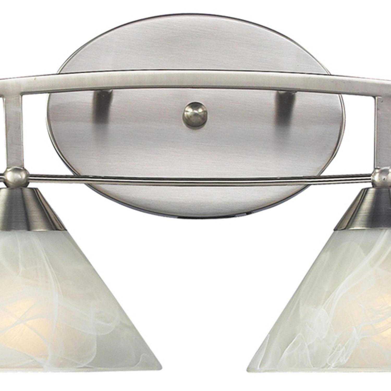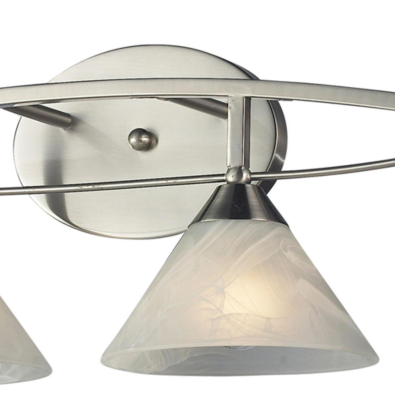 The geometric lines of the Elysburg collection offer harmonious symmetry with a sophisticated contemporary appeal. Finishes include polished chrome with white marbleized glass, satin nickel with white swirl glass or oil rubbed bronze with white marbleized glass.