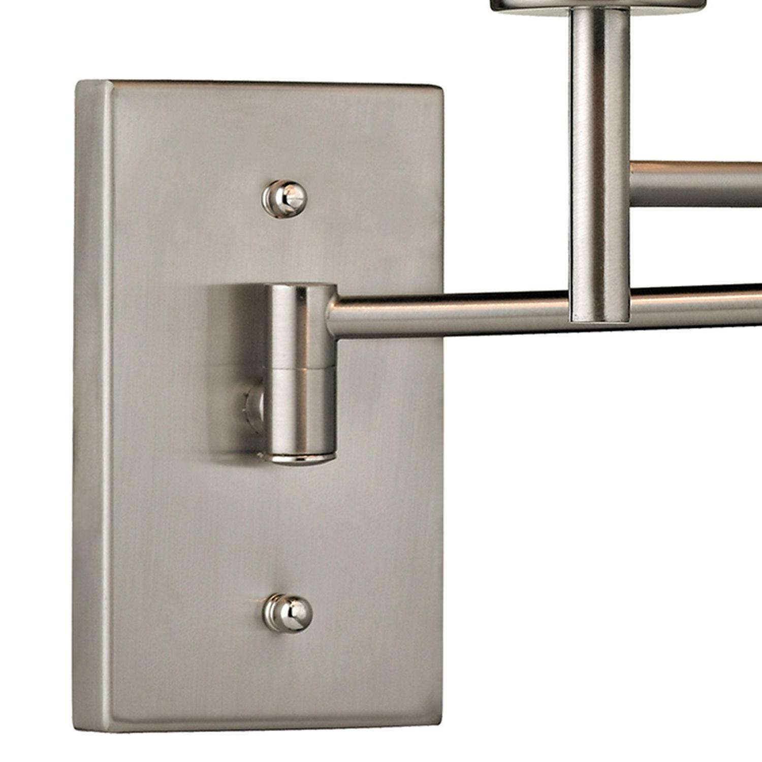 One light swingarm in brushed nickel.