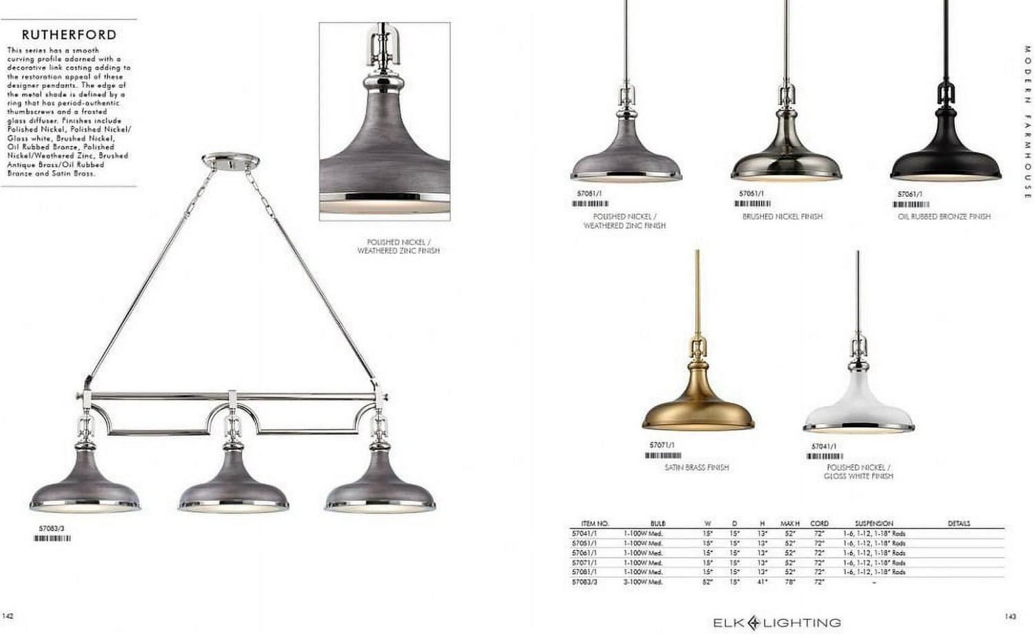 This series has a smooth curving profile adorned with a decorative link casting adding to the restoration appeal of these designer pendants. The edge of the metal shade is defined by a ring that has period-authentic thumbscrews and a frosted glass diffuser. Finishes include Polished Nickel, Polished Nickel/Gloss white, Brushed Nickel, Oil Rubbed Bronze, Polished Nickel/Weathered Zinc, Brushed Antique Brass/Oil Rubbed Bronze and Satin Brass.