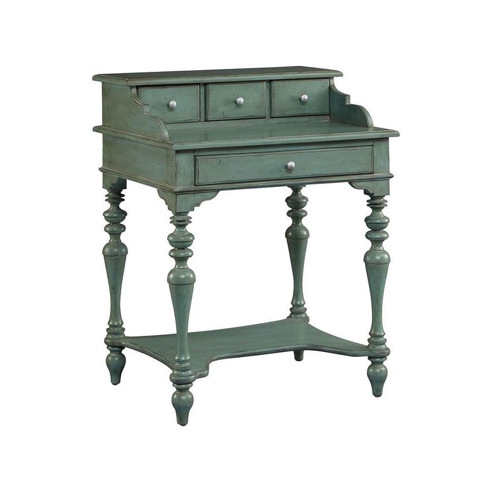 Elk Home-16647-Collection: Cecilia, Width: 23″, Height: 36.38″, Length: 28″, Desc: Four-drawer secretary style desk with lower open storage shelf and wire management on back panel. Flip down drawer front. Hand-painted distressed turquoise finish with gray rub through. Round pewter finish knob h,-Cecilia – 36.38 Inch Phone Desk