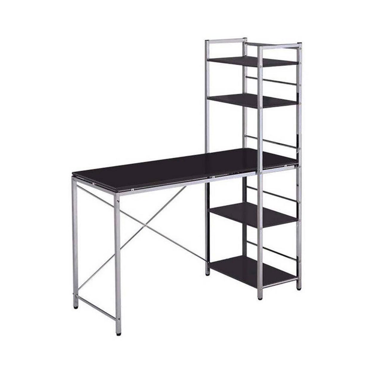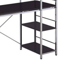 Change the look and feel of your work area with the ACME Furniture Computer Desk. It is narrow enough for small spaces and ideal for laptops. This contemporary-style workstation features an attached bookcase with four shelves. Use the extra storage space for storing textbooks and other study materials that you might need. Ideal for dorm rooms and home offices, the computer desk with shelves also makes a convenient addition to your office. It provides plenty of room for office supplies and other accessories. The desk frame is made of steel pipe while the tabletop and shelves are crafted of wood with a black finish. Cut down on the clutter. Get more out of your space with this student computer desk. Elvis Student Computer Desk, Black and Chrome: