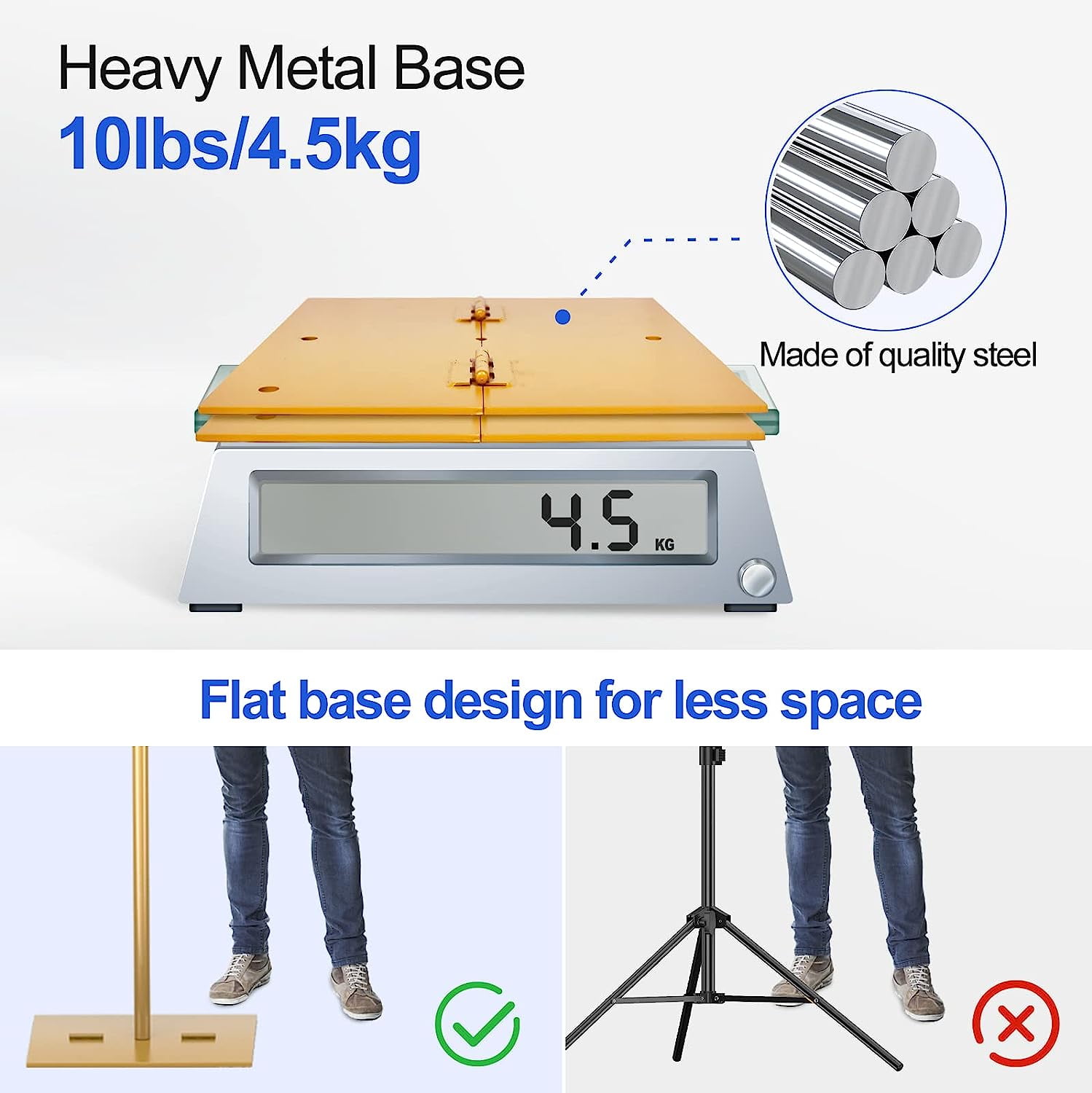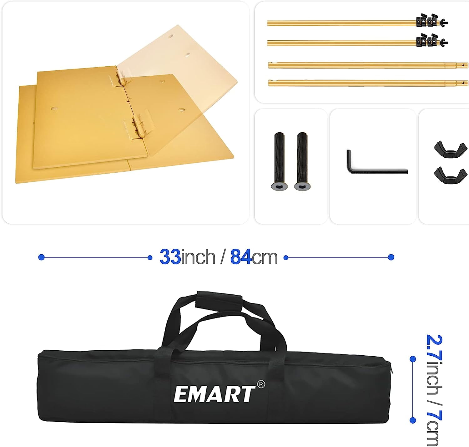 Emart Backdrop Stand, 6.5x10ft Background support kit with Heavy Duty Metal Steel Base Flexible Adjustment: The retractable design of Emart backdrop stand makes the crossbar more flexible in use. Width can be adjusted to meet users’ different needs. Flat but Sturdy: Different from the common tripod stand, our base is made of pure iron steel, flat and heavy duty. No sandbags needed. Spring Clamps: With flexible tips and ultra grip, the clamps can firmly fix the backdrop. 2.1 Inch Opening Jaw.
