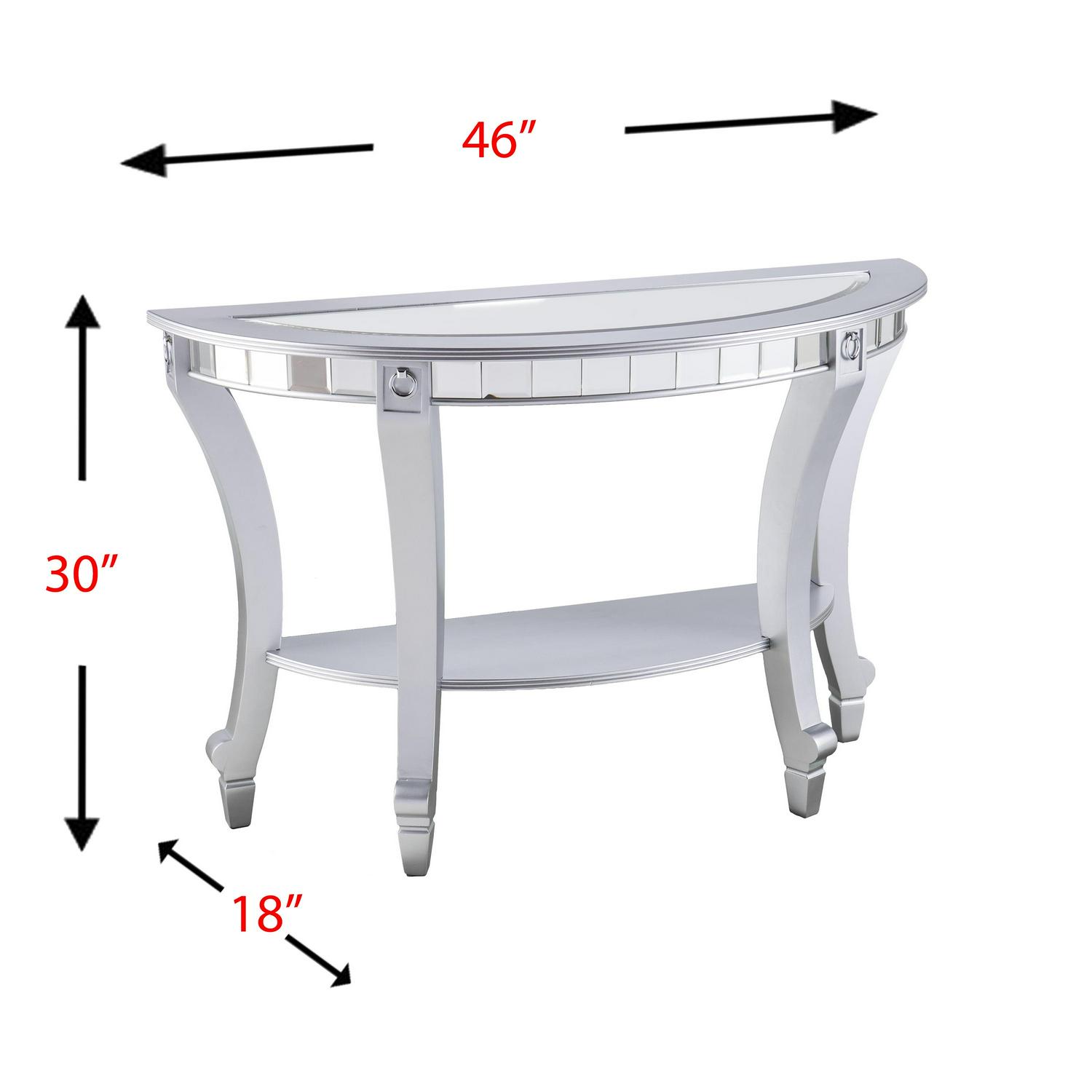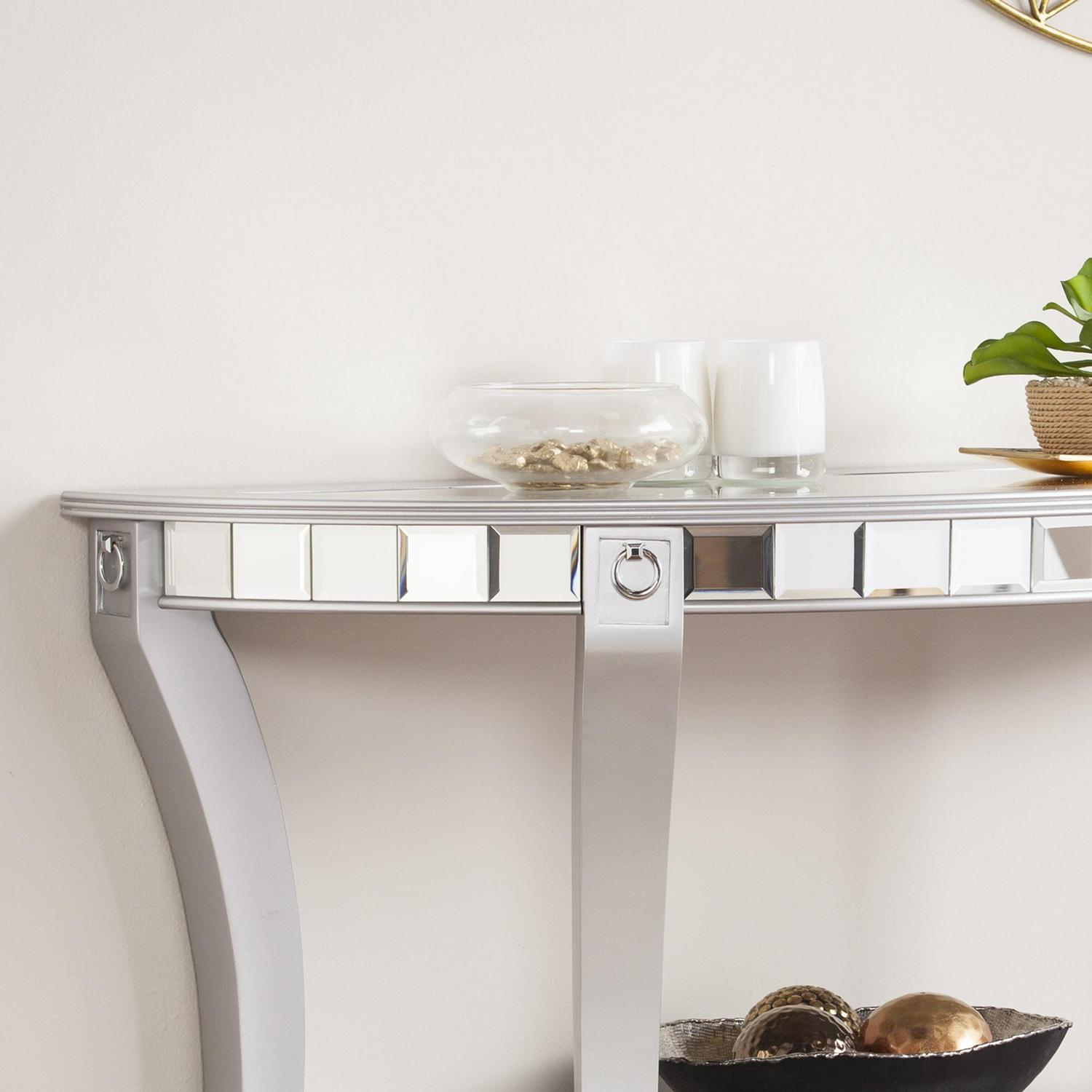 Ember Interiors Ladislas Mirrored Demilune Console Table, Silver
