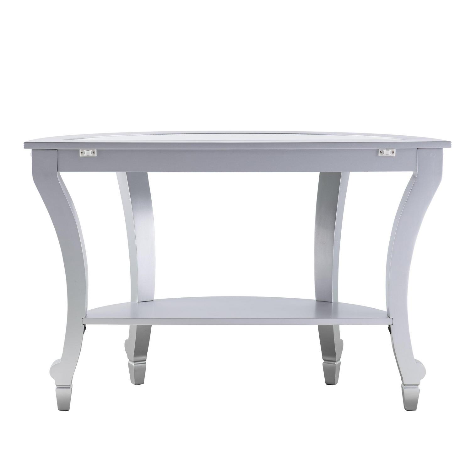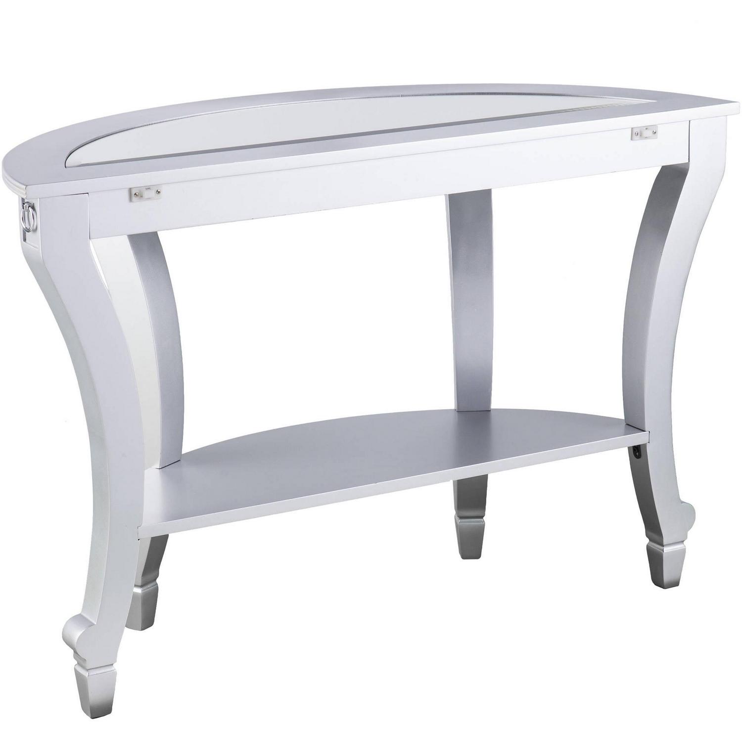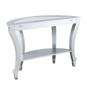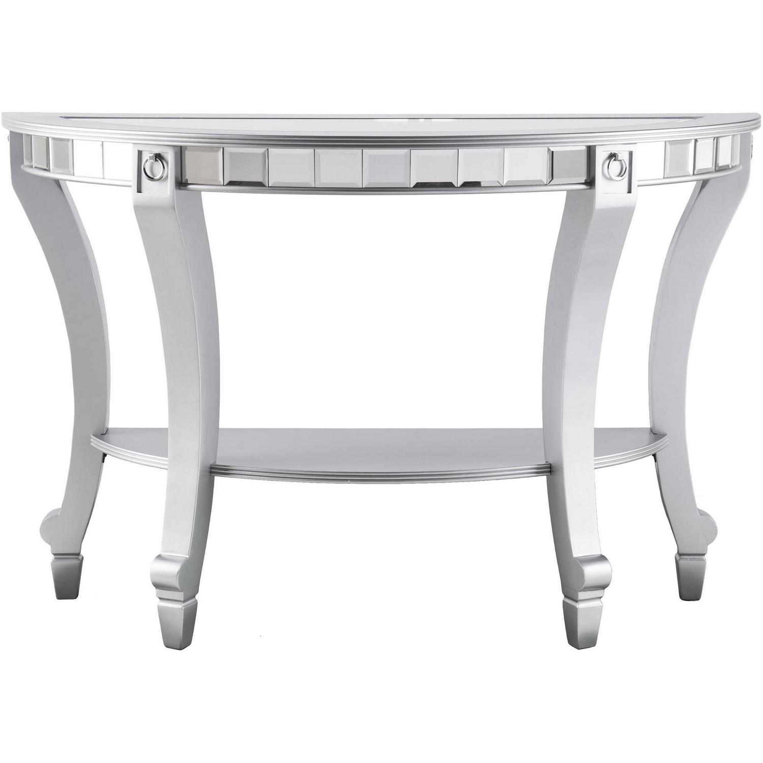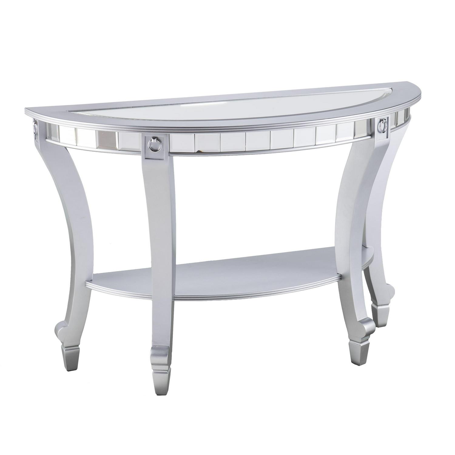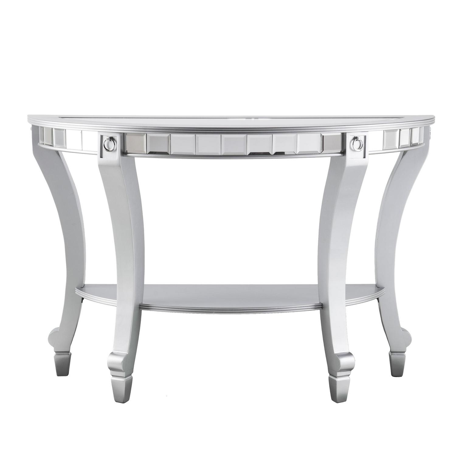 Ember Interiors Ladislas Glam Mirrored Demilune Console Table, Matte Silver: