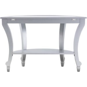 Lavish your home in the luxe life with the Ember Interiors Ladislas Glam Mirrored Demilune Console Table. Matte silver saber legs and contemporary claw feet hint at the table’s Hollywood regency inspiration while mirrored tiles shine the light on its glam style. The spacious mirrored tabletop displays everything from floral arrangements to entertaining accessories and the expansive shelf is perfect for showing off basket storage, electronics, or your top 10 reading list. Infuse your home with the essence of opulence with this sophisticated console table stationed in the entry, living room, or dining room.
